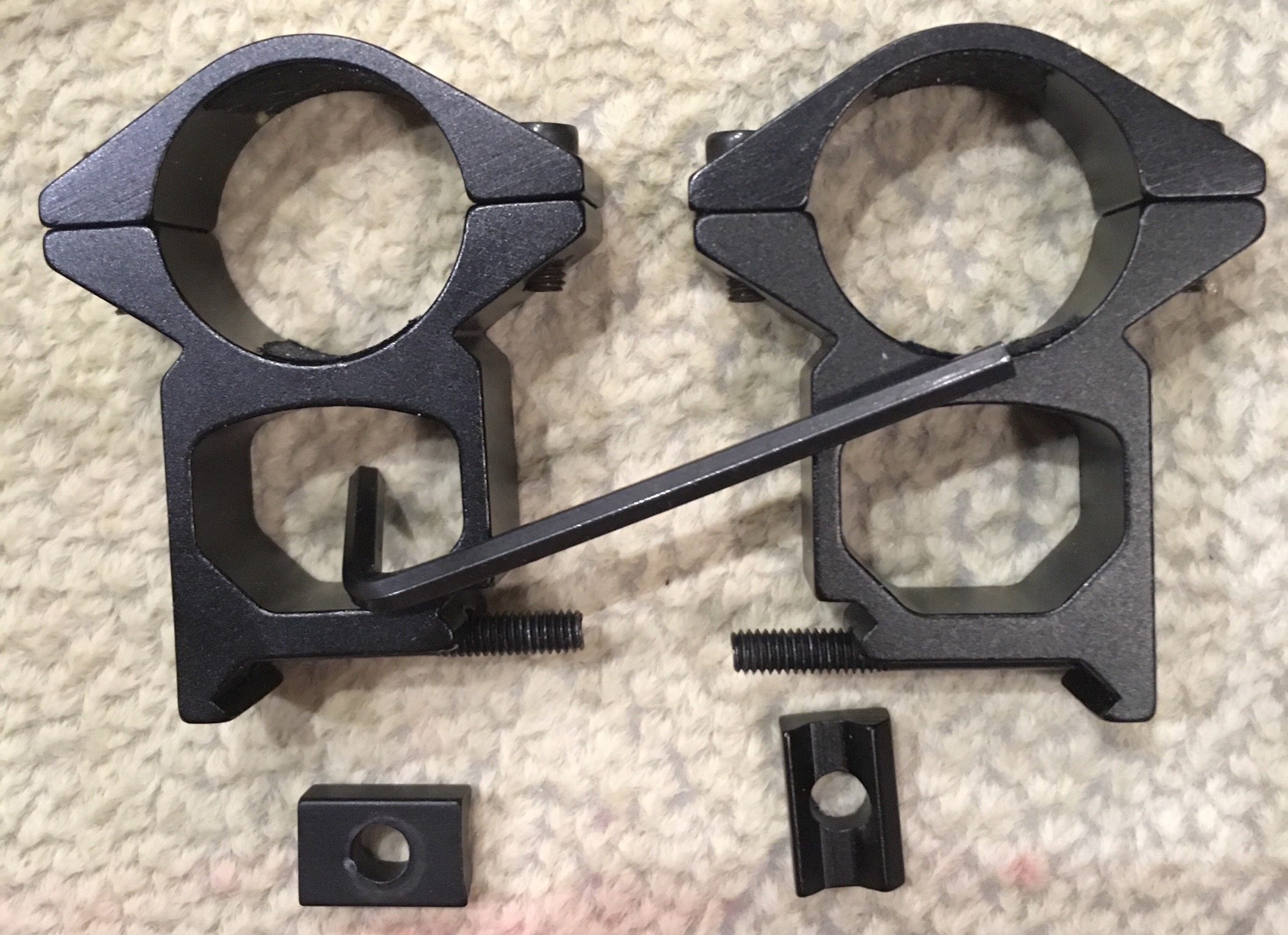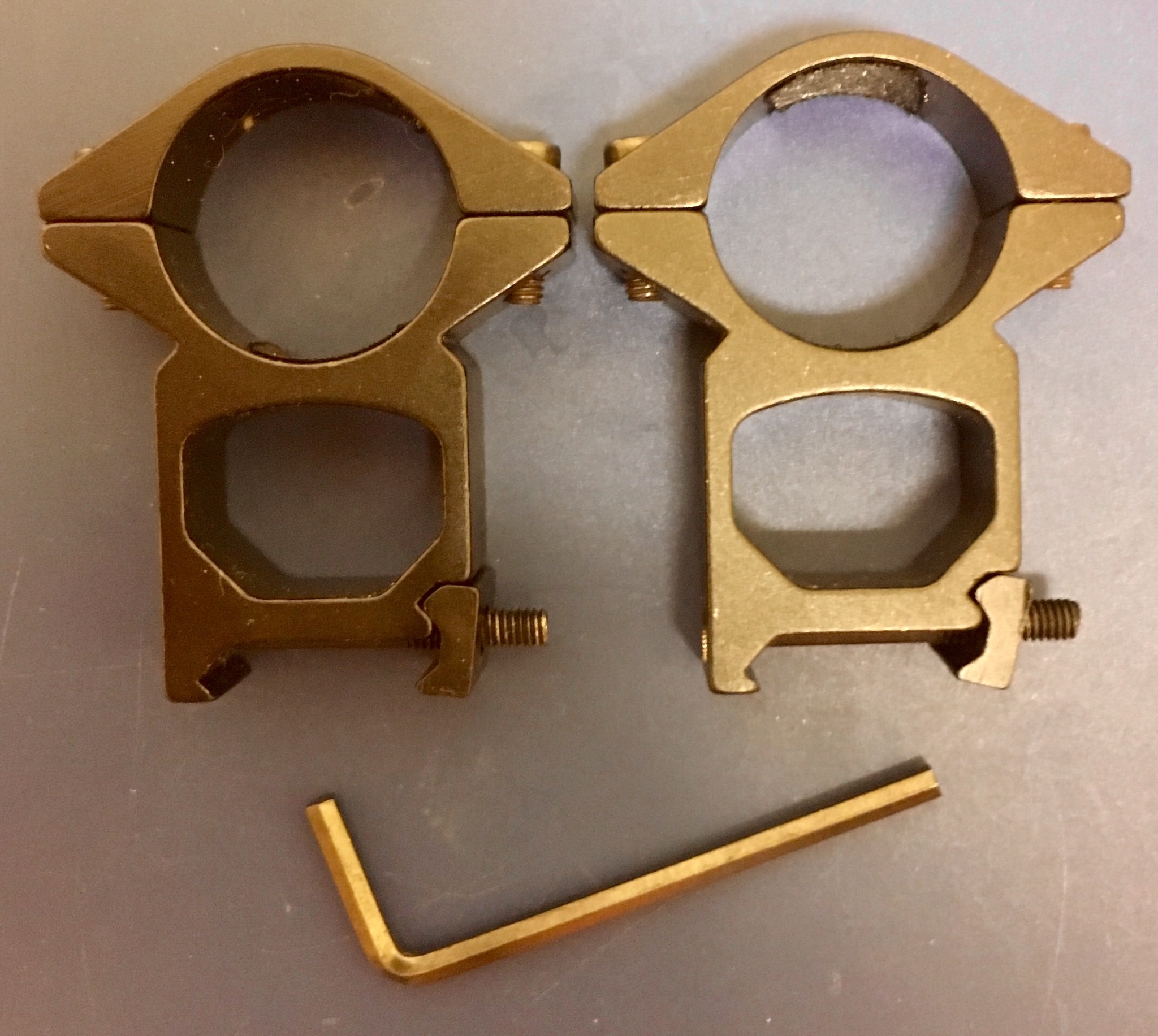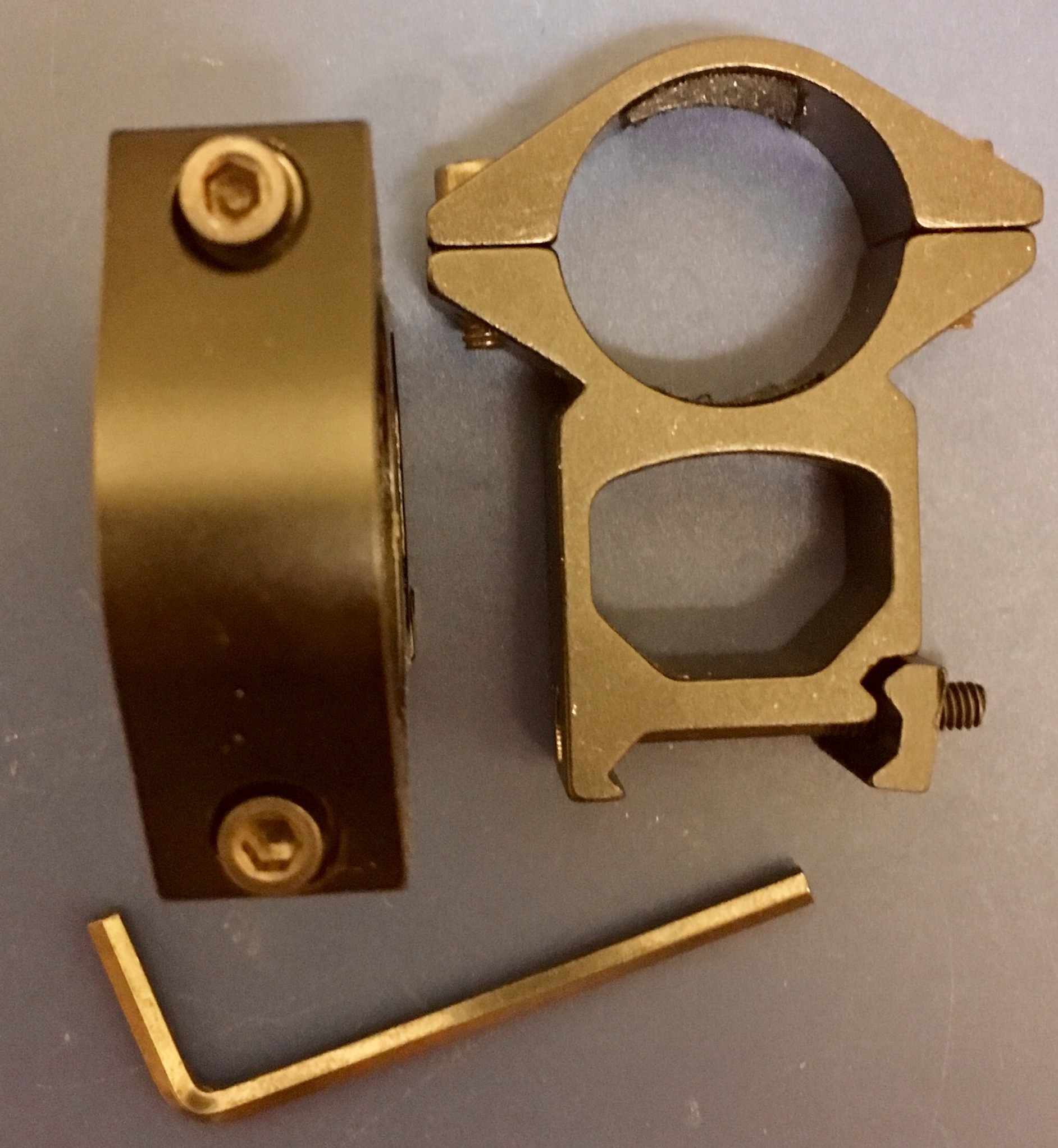 Есть вот такие дюймовые кольца на вивер, без зажимных болтов. Высота вроде 24мм