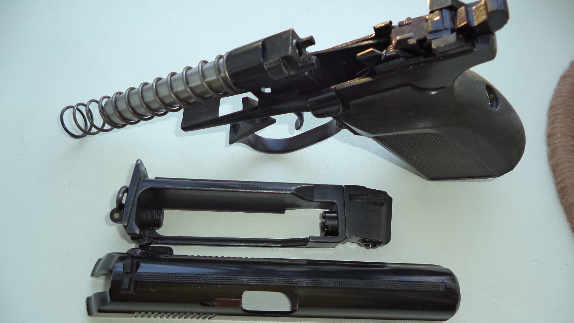 Продам 654й 20 серии 99 гв.Состояние отличное, ЗЗ дутая , воронение новое (воронил Серега, FOTON),рукоятка черный бакелит, армированная от ПММ , точеная под меньшую ладонь, имитатор выбрасывателя красный, курок красный, тяга красная, скоба фигурная, спусковой крючок под 49 год, тонкий, предохранитель красный, магазин с зацепом и антабкой, насечки с рамки убраны, прокладка ствола есть, ствол родной с резьбой, антиблик широкий, борода с срезом.Цена 240 рублей. Сморгонь 80336863322 мтс.