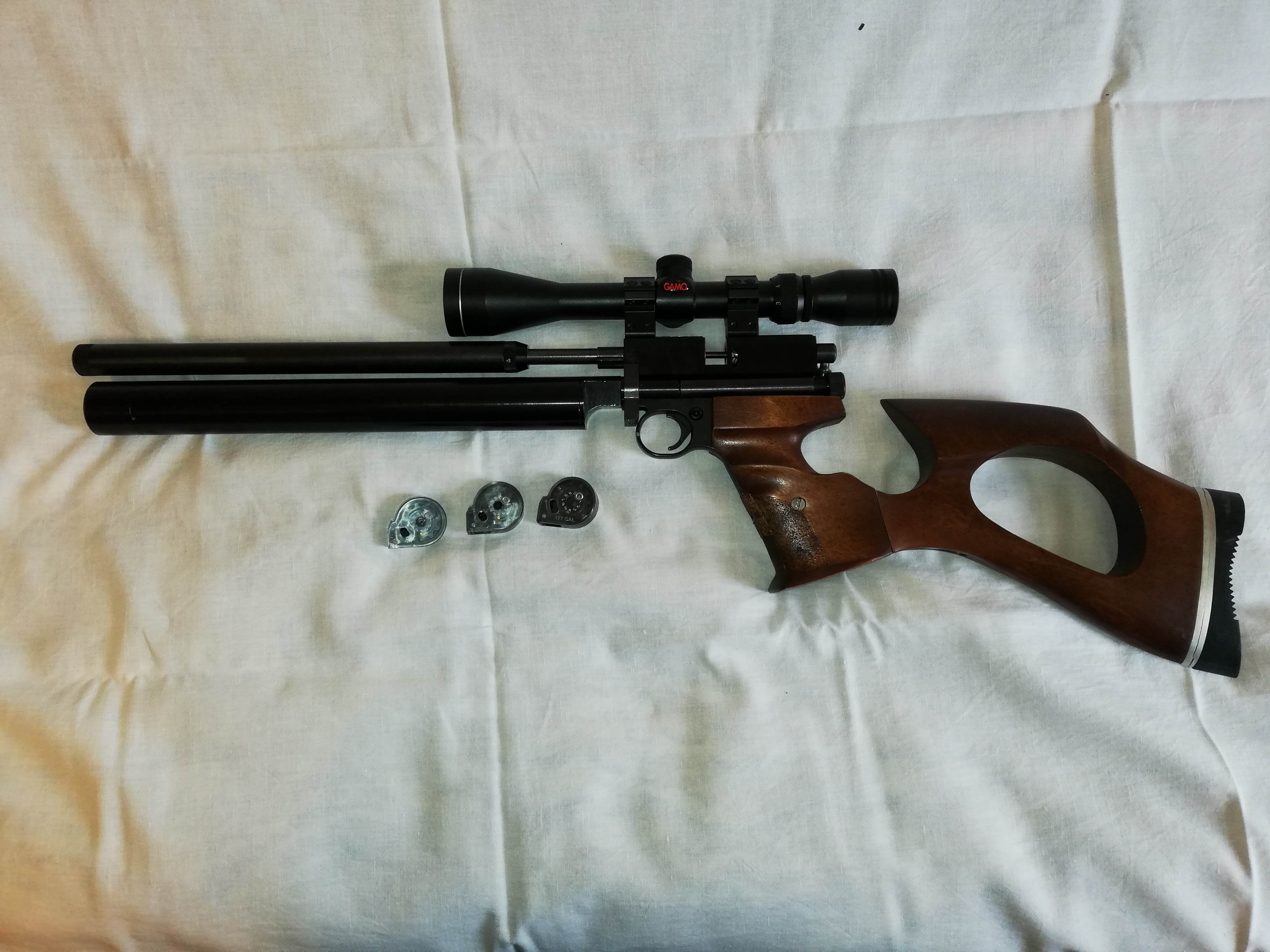 Продам винтовку ПЦП на базе Crosman 1377. Редукторный многозаряд под марадёробарабаны, калибр 4.5мм. Отъёмный приклад. В комплекте три барабана, прицел "GAMO 3-9x40" и чехол. Цена за комплект 650 рублей. тел +375 29 508 75 31.