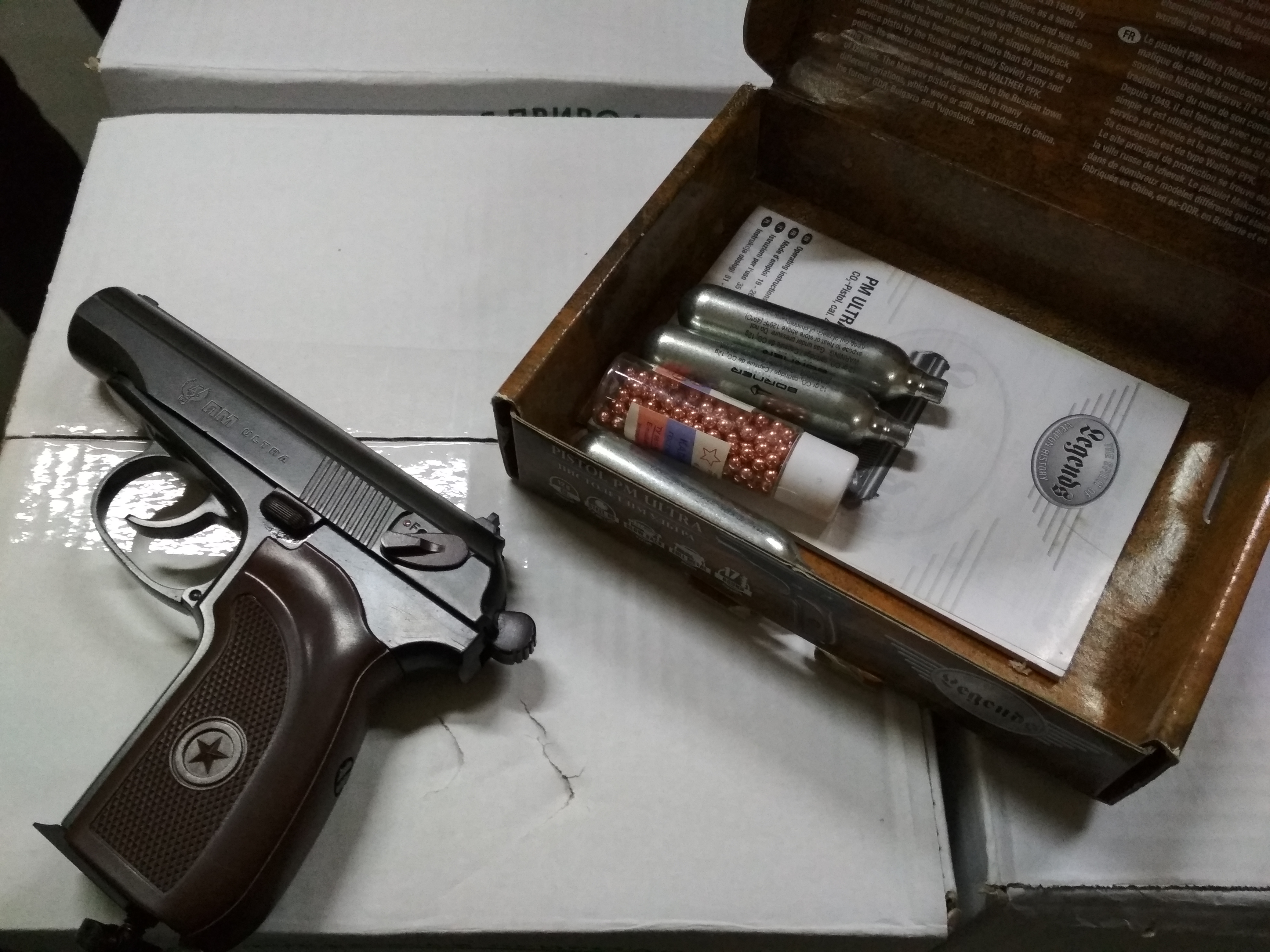 Комплект: Коробка, документы,пара баллонов и пульки.