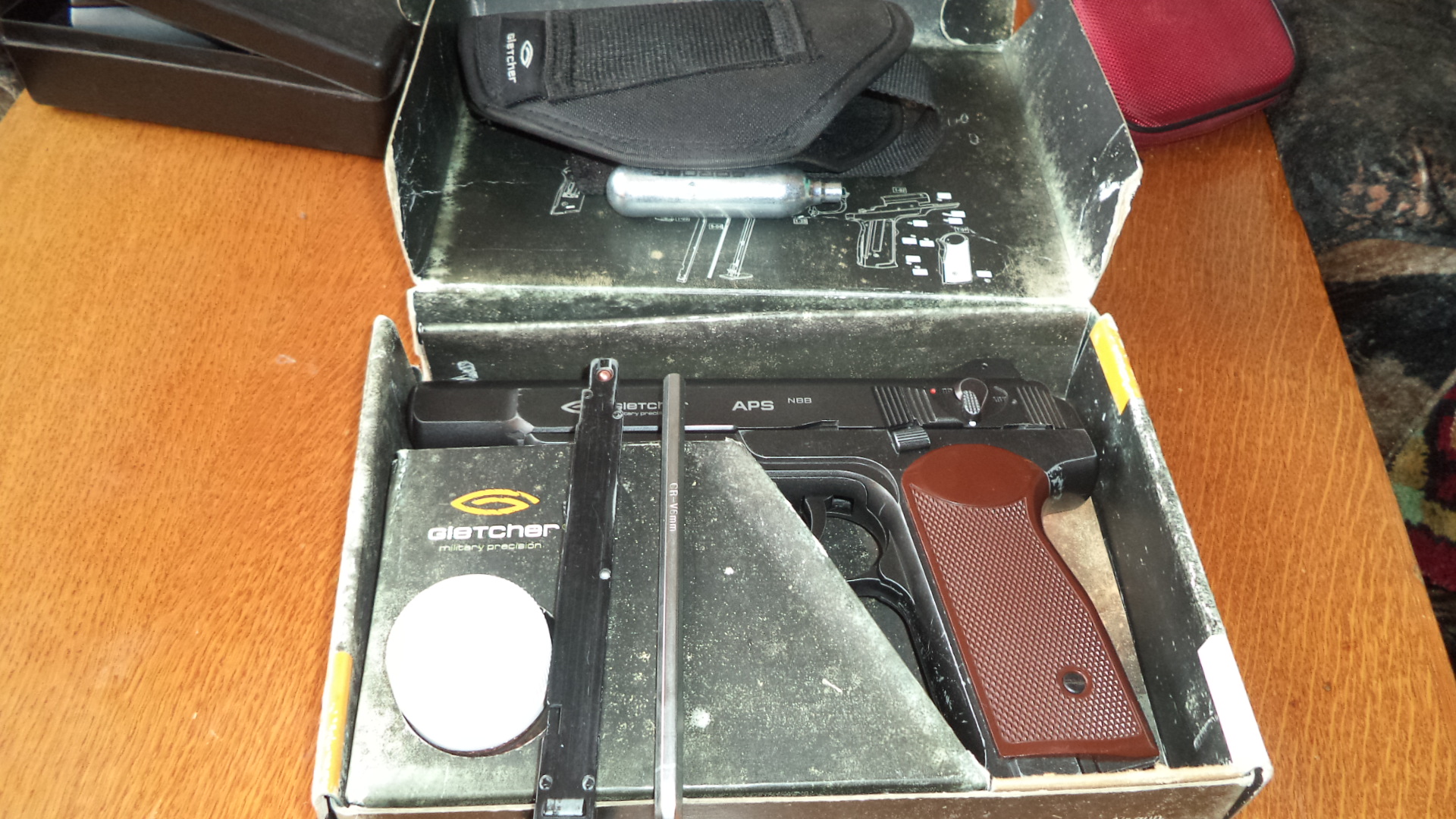 АПС в рабочем состоянии. Один нюанс стреляет только с предварительным взводом. Цена 70 рублей. Сморгонь. МТС 80336863322. Не мой продаю по просьбе знакомой. Внешний вид хороший. Есть кобура на ремень. Документы, коробка , шарики , ключ.