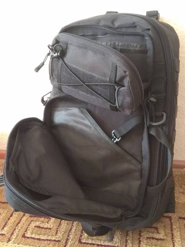 4. Рюкзак однолямочный. Размер 26х42х20 см . Карманов немерянно, глубина основного отсека 11-12см, влазит удлиненный леший и колба 0,5л, сделан вкладыш из пластика (съемный). При носке можно перевернуть на пузо для доставания инструмента без скидывания рюкзака. 45 руб.