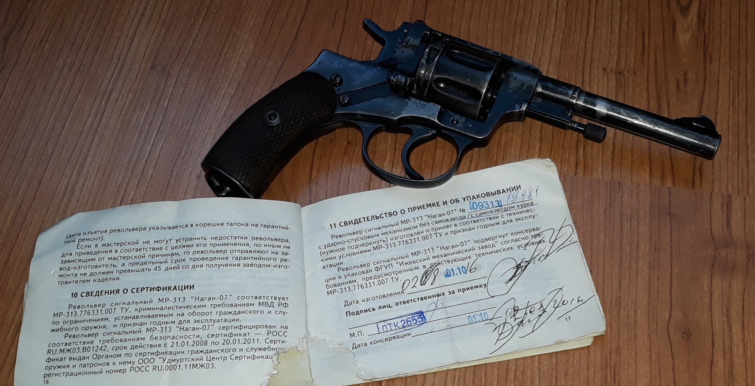 Продам наган сигнальный МР-313 1944г почищен,смазан,все взводится и щелкает мягко без заеданий.Доки имеются.По цене 550 рублеф.Допфото могу скинуть на вайбер.