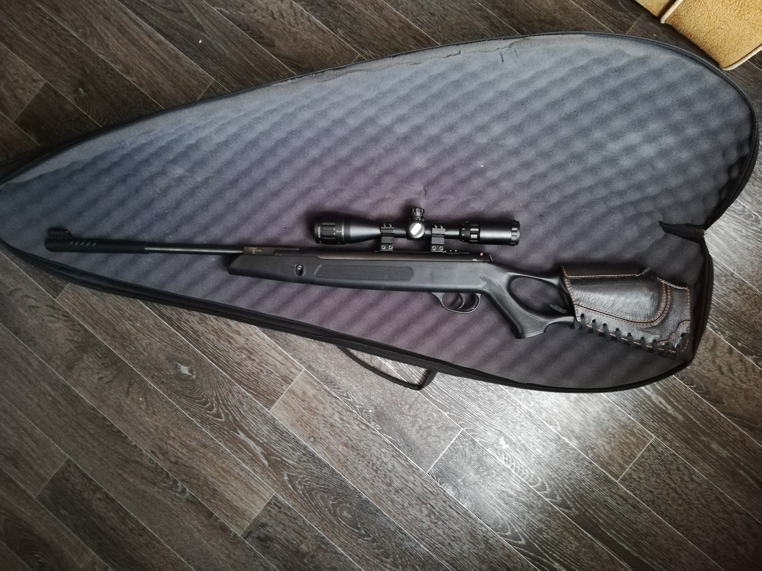 Hatsan striker edge состояние хорошее, пару царапин на ложе.усм металл не пластик,обслужен стоит новая гп, манжета. Щека очень удобная если что можно снять. В комплекте:, доп манжета от вадо чехол комплект для чистки родные прицельные jsb remasted 0.87(нехватает пулек 10) все присутствует. За все хотелось бы 300р