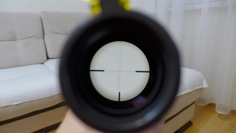 от себя добавлю, как владелец аналога, подсветка красная, 11 градаций яркости и освещает ТОЛЬКО сетку, а цифры и жирные лучи по краям сетки остаются черными. На максимальной кратности не мылит. Тактические барабашки закрыты колпачками, на ноге барабанчика, кроме него самого, нанесены деления (типа как на "микрометре 0-25 мм" или другом)