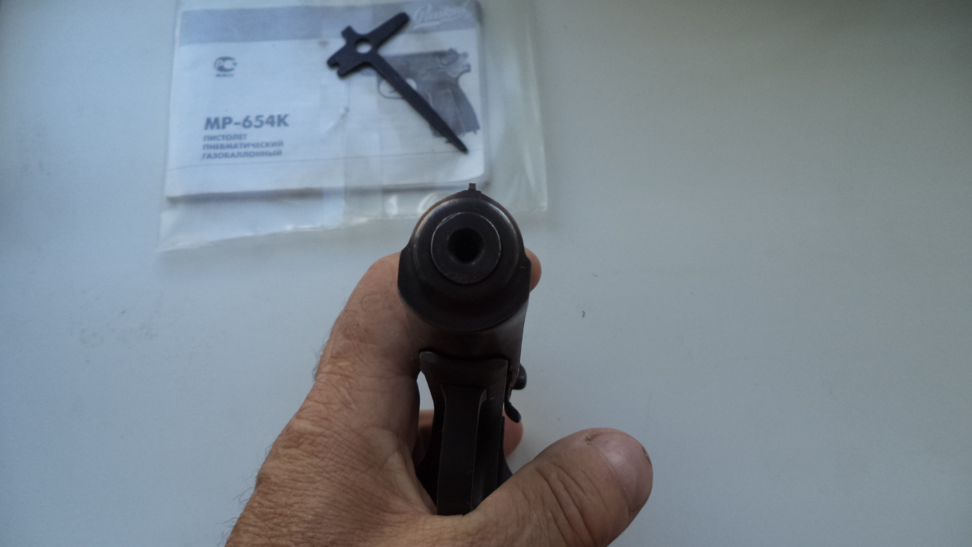 Пест в хорошем состоянии.Коробка документы, ключ. Облазил весь нет чтобы определить марку. По его данным это железка выпускалась с 10 по 11 год. А борода у его потому что он бывший газовик. То есть заводская переделка газового в пневмат. Так сказал всемогущий ГУГЛ. У меня такой впервые. Сам пест - затвор с бородой, гайка с зацепом , в магазине антабка, рукоятка черная , антиблик широкий