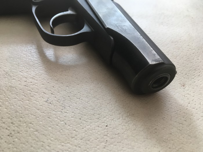 По «внутрянке» гладкий стволик с резьбой под фальшглушитель, пара красных деталюг, боевая пружина пожёстче, ударник подточен, чтобы курок человеческий стал, все остальное сток. Магазин не пилился, будет желание новый хозяин попробует свои силы - донор-магазин прилагается ( да пятка железная)