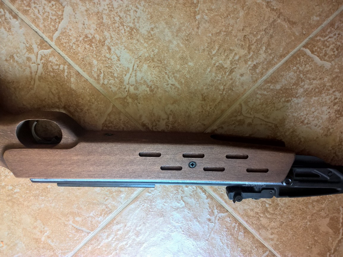 Установлено деревянное ложе из вишни, а так же куплен чехол.
