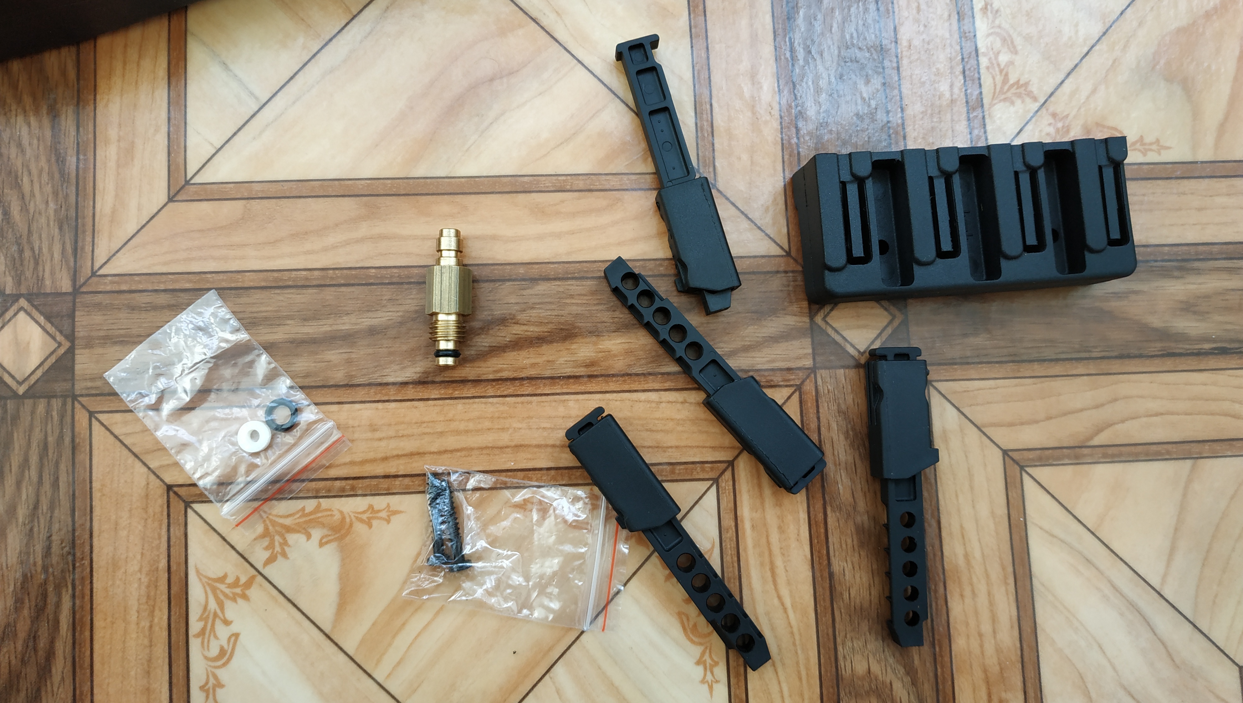 Комплектация четыре магазина с подставкой, штуцер заправки, документы, небольшой ЗИП