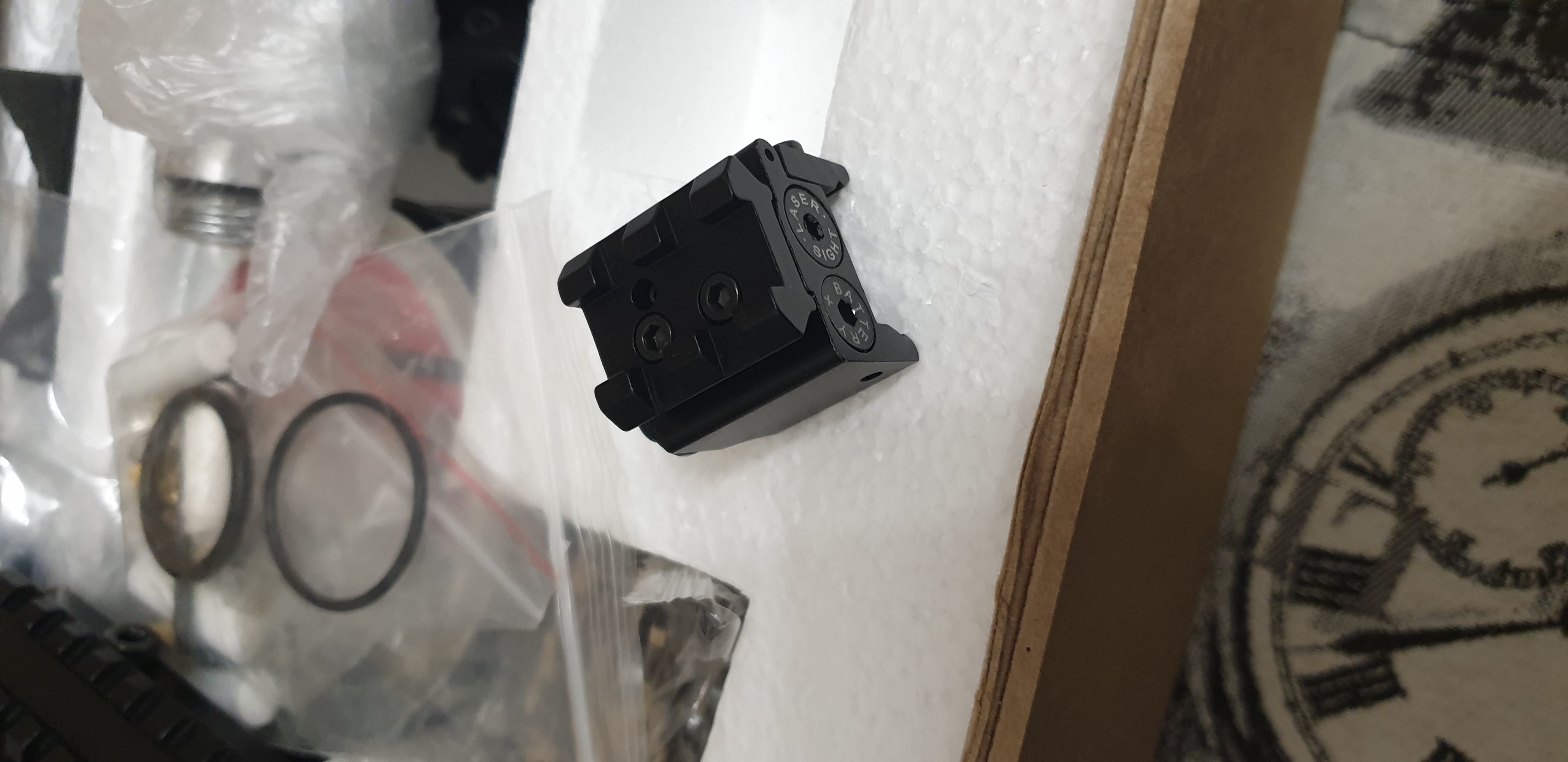 Продам ништяки для лешего и ему подобным : резиновая накладка на рукоятку 10р , редуктор оригинал настроен на 220 1,175 50р, оригинал вставка в модер под все калибры 30р, лазерный целеуказатель 40р , рукоятка 30р цены действительны при самовывозе :-):