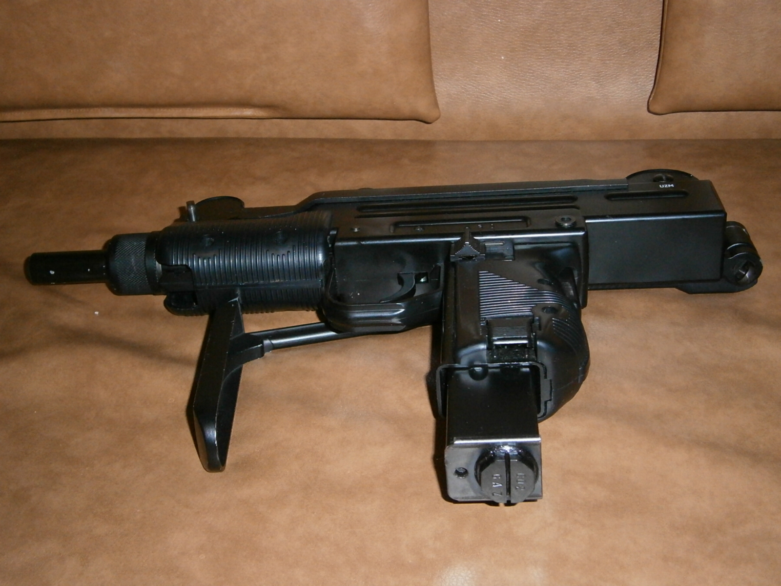 Машинка имеет блоубек (имитация отдачи,затвор бегает як у настаяшчым) бешеная скорострельность , возможность стрельбы очередями. На левой щеке стоит переводчик огня ARS(авто-одиночный- стоп). S -блокирует спусковой крючок. Ведение стрельбы возможно только при сильном сжатии рукояти- сзади на ней расположена клавиша блокировки. Спереди под стволом есть Т-рельс для ЛЦУ, а также пару антабок для ремня. В общем пневмокопия боевого аналога, для плинка отличный аппаратец! :co_ol: