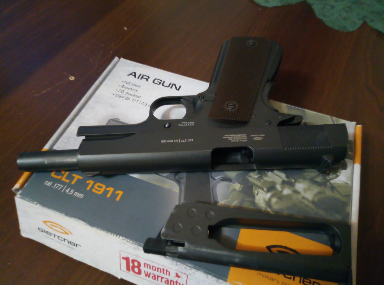Продам пневматический пистолет Gletcher CLT 1911 Blowback 4.5 мм, б.у. три баллона отстреляно, состояние нового, полный комплект, в придачу отдам 3 баллона и банку пуль. Гомель. Стоимость 240р. Возможен обмен на Юнкер длинноствольный с моей доплатой. Александр +375 (44) 710-27-32 (он же Viber)