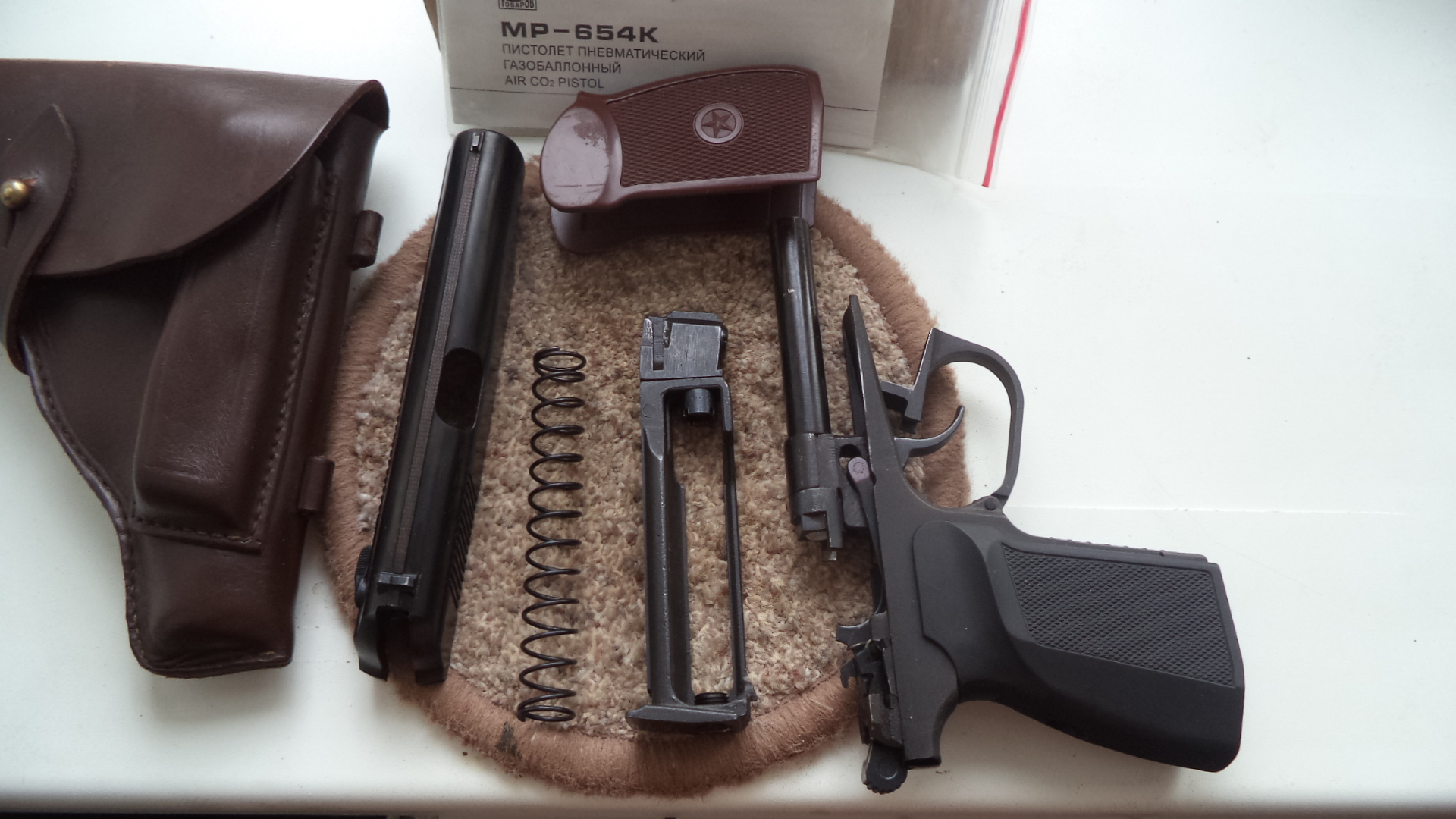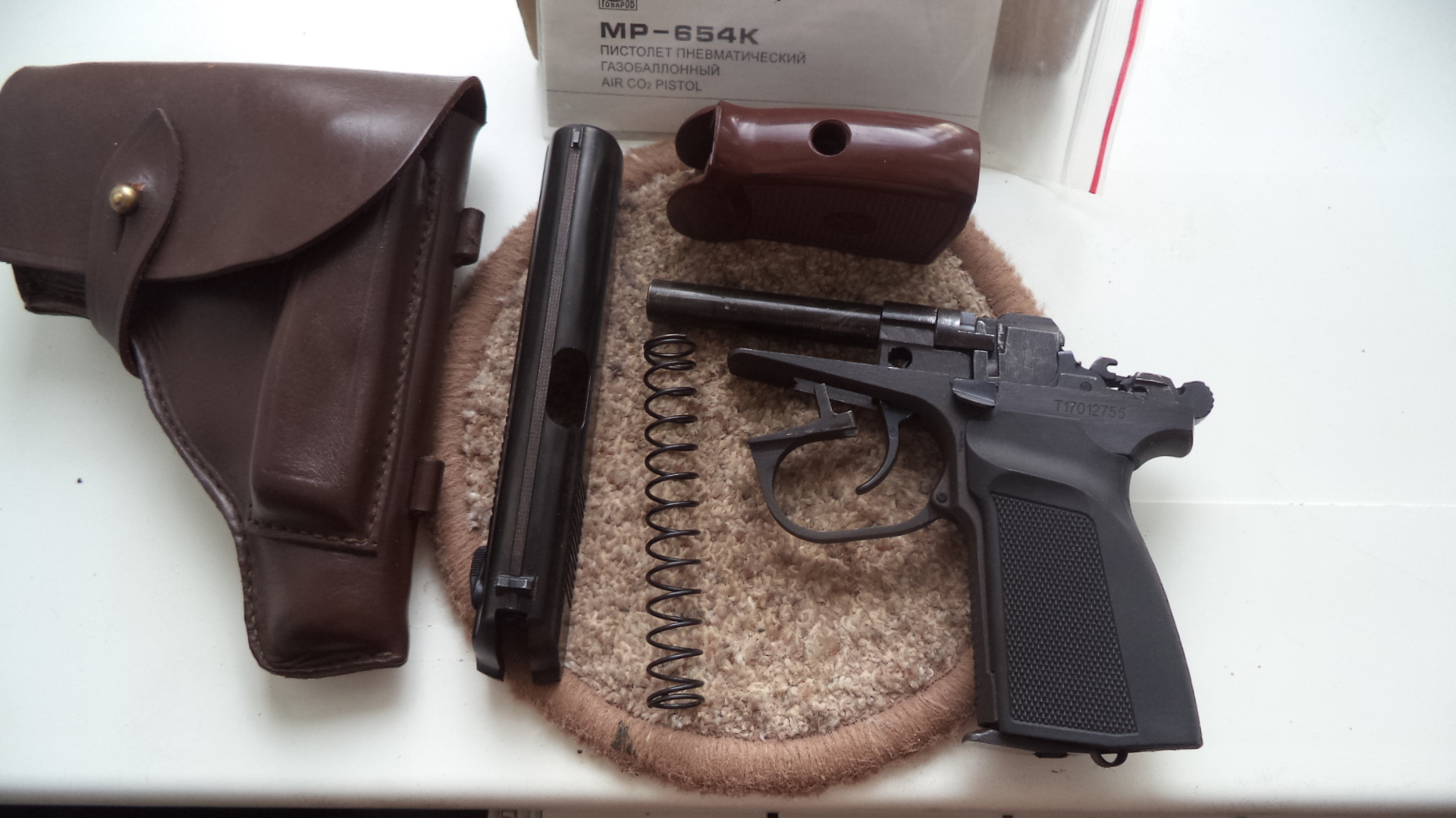 28ка с гладким стволом , голова с зацепом и болтом для центрации шара,гайка круглая, прокладка фторопласт, рукоятка на выбор коричневый или черный пластик. В комплекте коробка документы, кобура , пистолет. 180р. СМОРГОНЬ. 80336863322 МТС