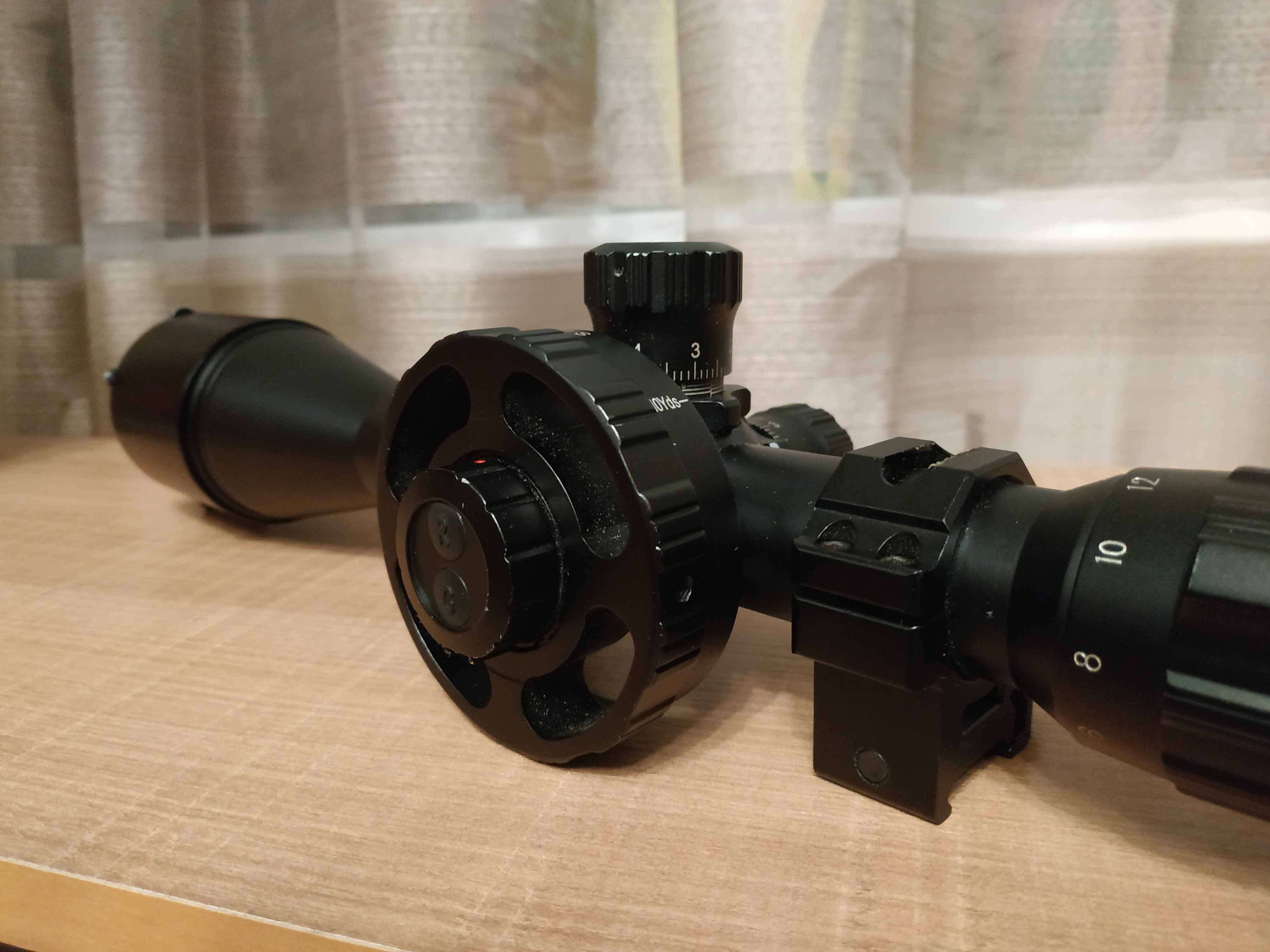 Состояние отличное.Есть подсветка сетки.В комплекте колесо отстройки параллакса, кольца, защитные крышки
