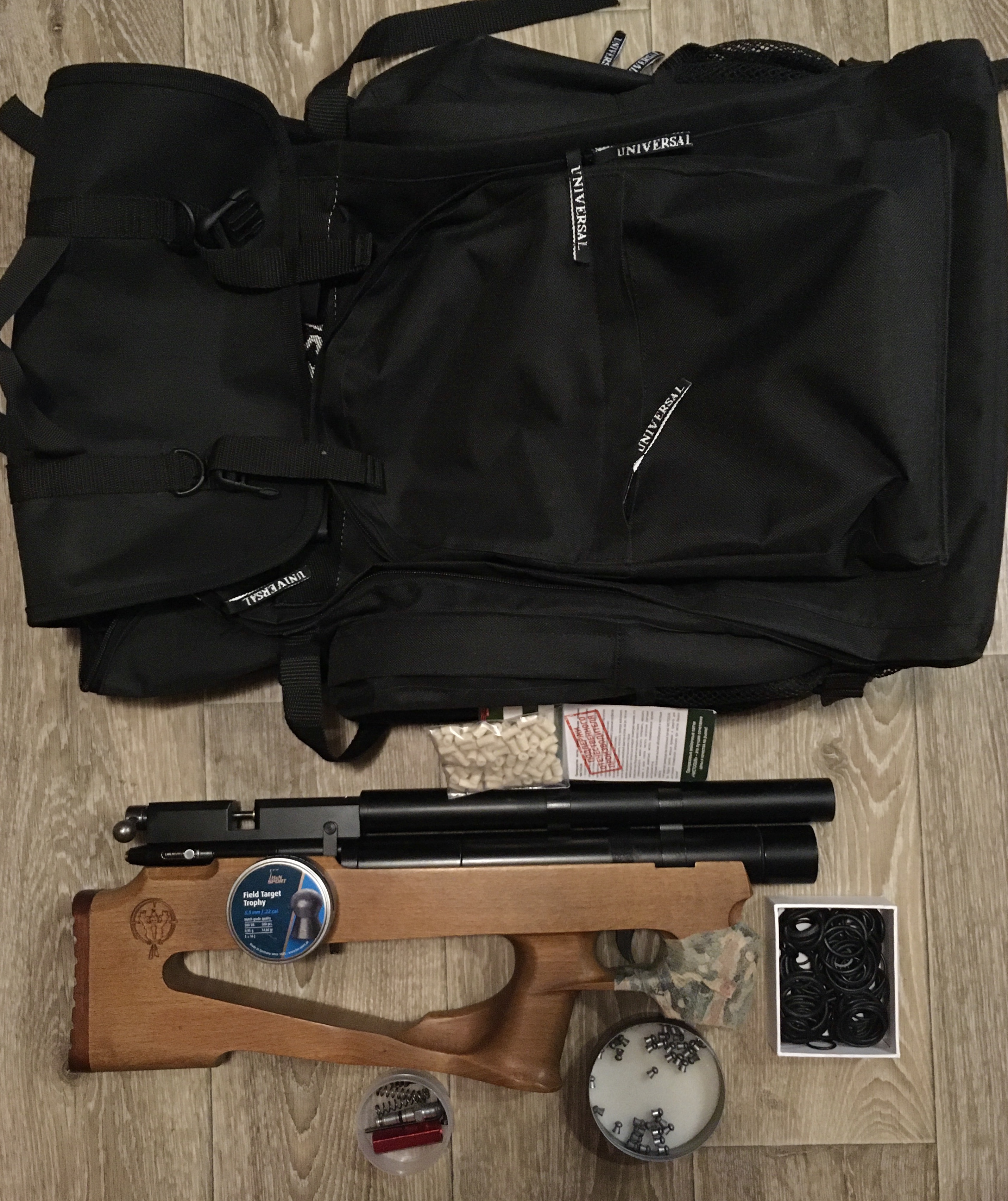 Все, что на фото: булка без планки ласта-вивер, рюкзак(плотное дно), запечатанная банка припасов H&N 0.95гр(500шт), остатки жсб, штуцер, полная пачка патчей для чистки 5.5, пару пружинок, большая горсть резинок, и какие-то мелочи....760 рублей :dr_ink: :-): :ohot_nik: