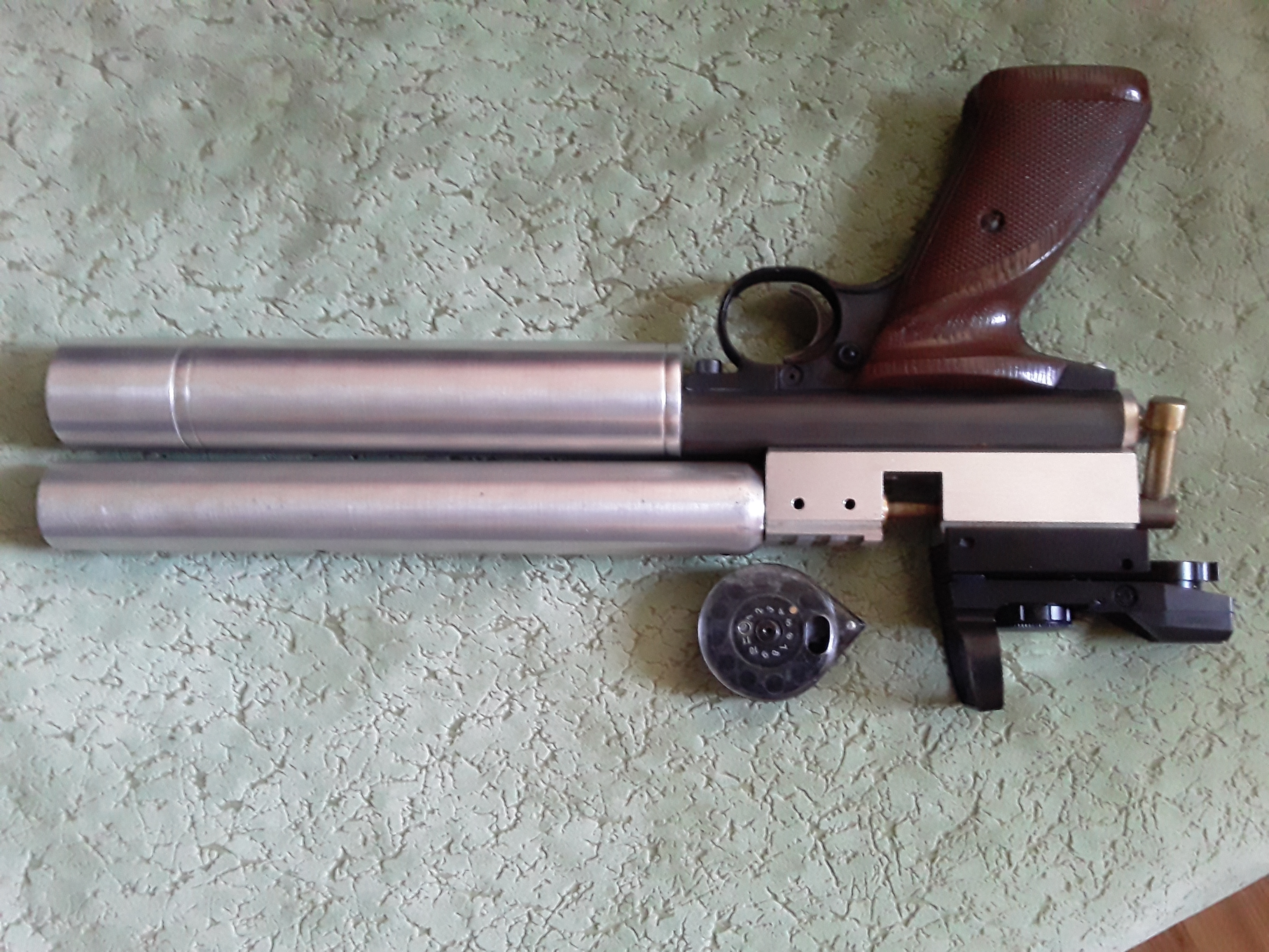 Пистолет не молодой. Когда и кто его собрал не знаю. Покупался здесь же, на форуме. Всё исправено работает.. Прямоток. На плато 5-6 полноценных пуков. Продается в 3дж.