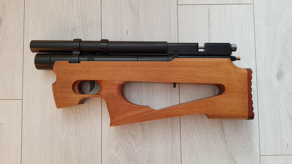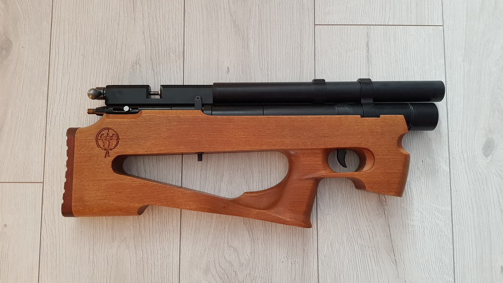 Длина 51 см, модератор от снайпер 71, стволик кросман 5,5, редуктор. Была перебрана для устранения мелких недочетов(не полная постановка снаряда на нарезы).