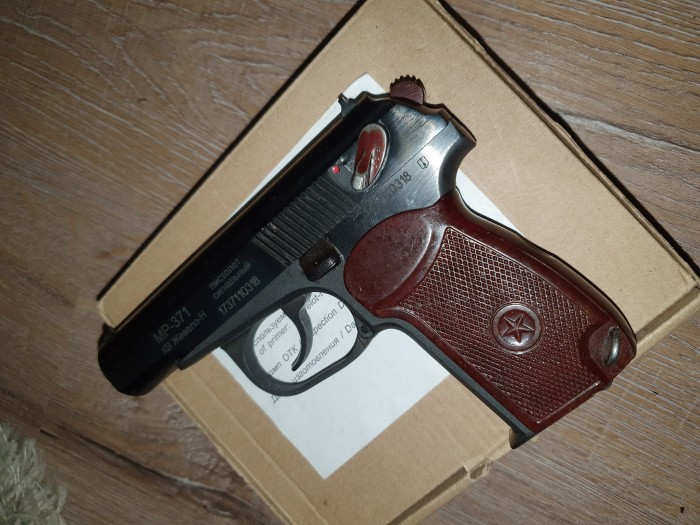 Мр 371 ,стоит красный зип,бакелитовпя рукоятка , латунные картриджи с поршнеми для работы автоматики, цена 450рублей ,зип могу продать отдельно