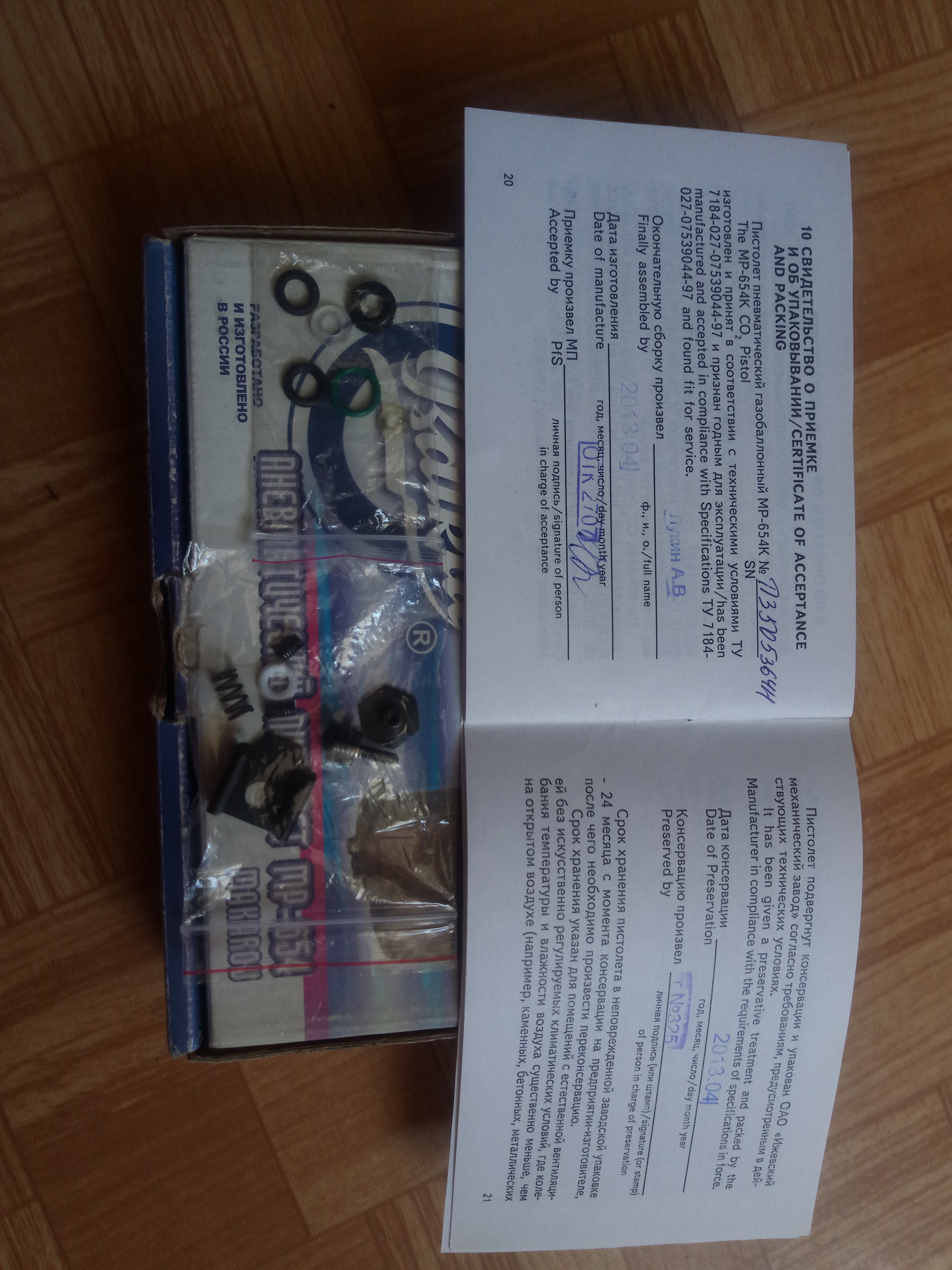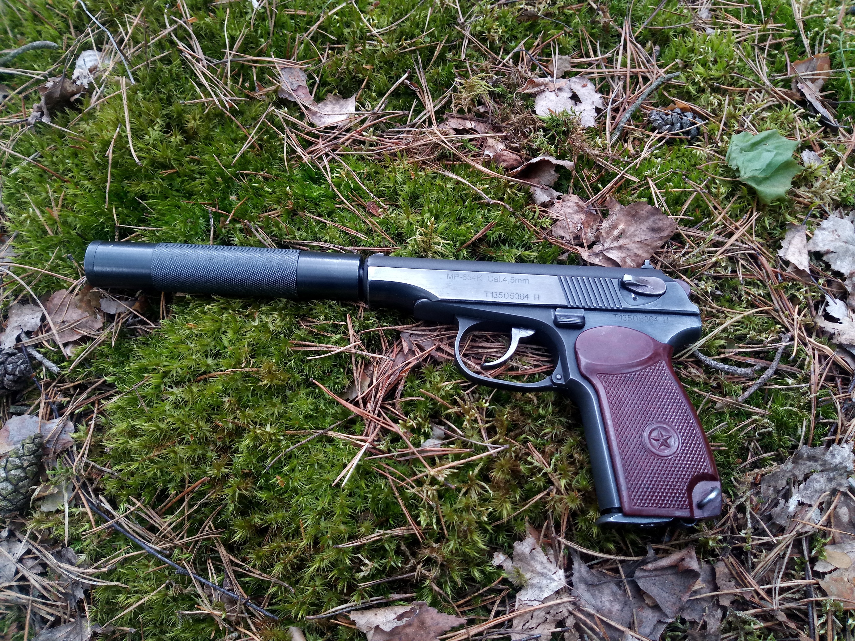 Продам МР-654К-32 (500 экспортная серия) в отличном состоянии и на одних номерах 2013 года выпуска. Фигурная скоба, широкий антиблик, гладкий стволик с удлинителем, бакелитовая рукоять, красный ЗИП и внутрянка, дутая ЗЗ, фрезерованный спусковой курок, зацеп с прокладкой из полиуретана, скрытый поджимной винт и многое другой. В комплекте коробка, документы, кобура ПМ, 2 ключа, запасные прокладки в том числе и фторопластовая, винты, мягкая пружина клапана.