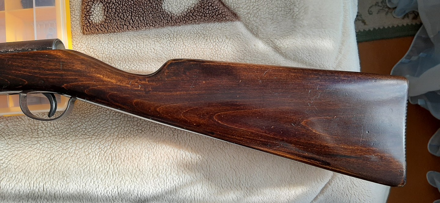 Из плюсов - достаточно неплохой сохран нарезов ствола, правда есть пара царапинок. Целое ложе, но лакированное. Предохранитель при открытом стволе работает. Все железо родное, ни чего не менялось и не пилилось.