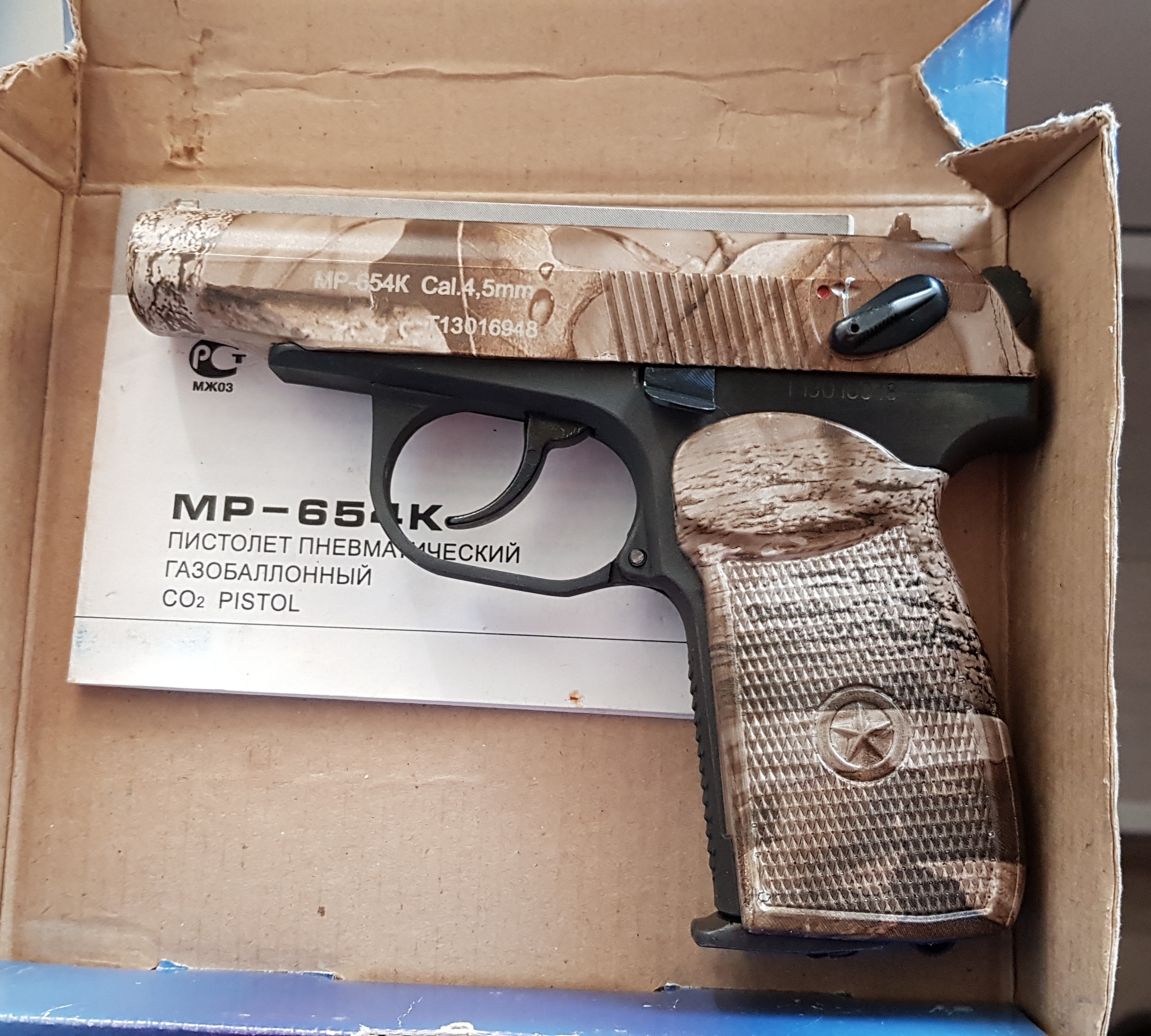 Продается мр 654 23 серии. Сделан небольшой ап - это втулка в голове магазина, устранен откат шариков при выстреле в магазине, расточен клапан. Заменены все рти. Почтой без проблем. Цена 170 р. 8044 7343135.
