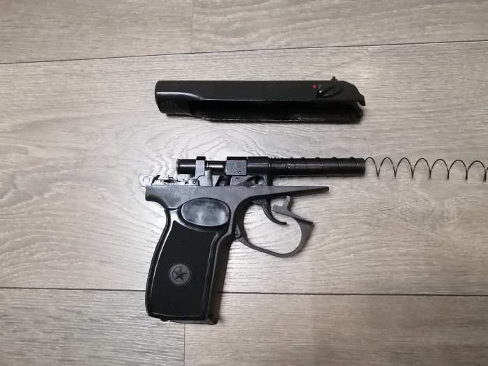 Пистолет в идеальном состоянии. Особенность данной модели от мр-654 - наличие функции блоубэк с хорошей отдачей. Балкона СО2 хватает на 4-5 магазина (в магазин вмещается 20 шаров) полноценных выстрелов т.е. полный откат затворной рамы и постановка куртка на боевой взвод. Средняя скорость 110 м/с, хороший результат для пистолета с блоубэком. Энергия до 3 Дж. В комплекте: сам пистолет, коробка, кейс Италия, документы (паспорт), гарантия, ключ. Минск. Торга и пересыла нет. Цена 250 бел.руб.