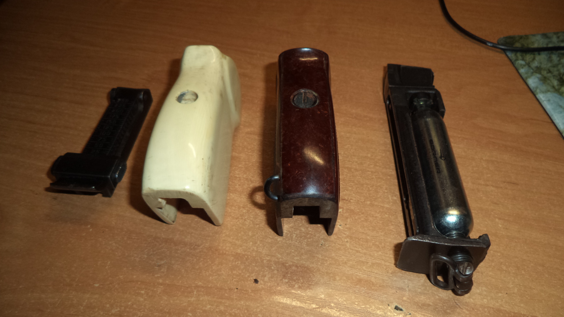 Рукоятки для МР. ПМ , ПМ СХП , МР371 и др. Бакелит ( от боевого ПМ) 32р , белая , не знаю из чего 15р . Целик на ластохвост , регулировка от 25 до 250 метров 20р. Магазин с зацепом в очень хорошем состоянии 75р. Могу выслать. Сморгонь. 80336863322.