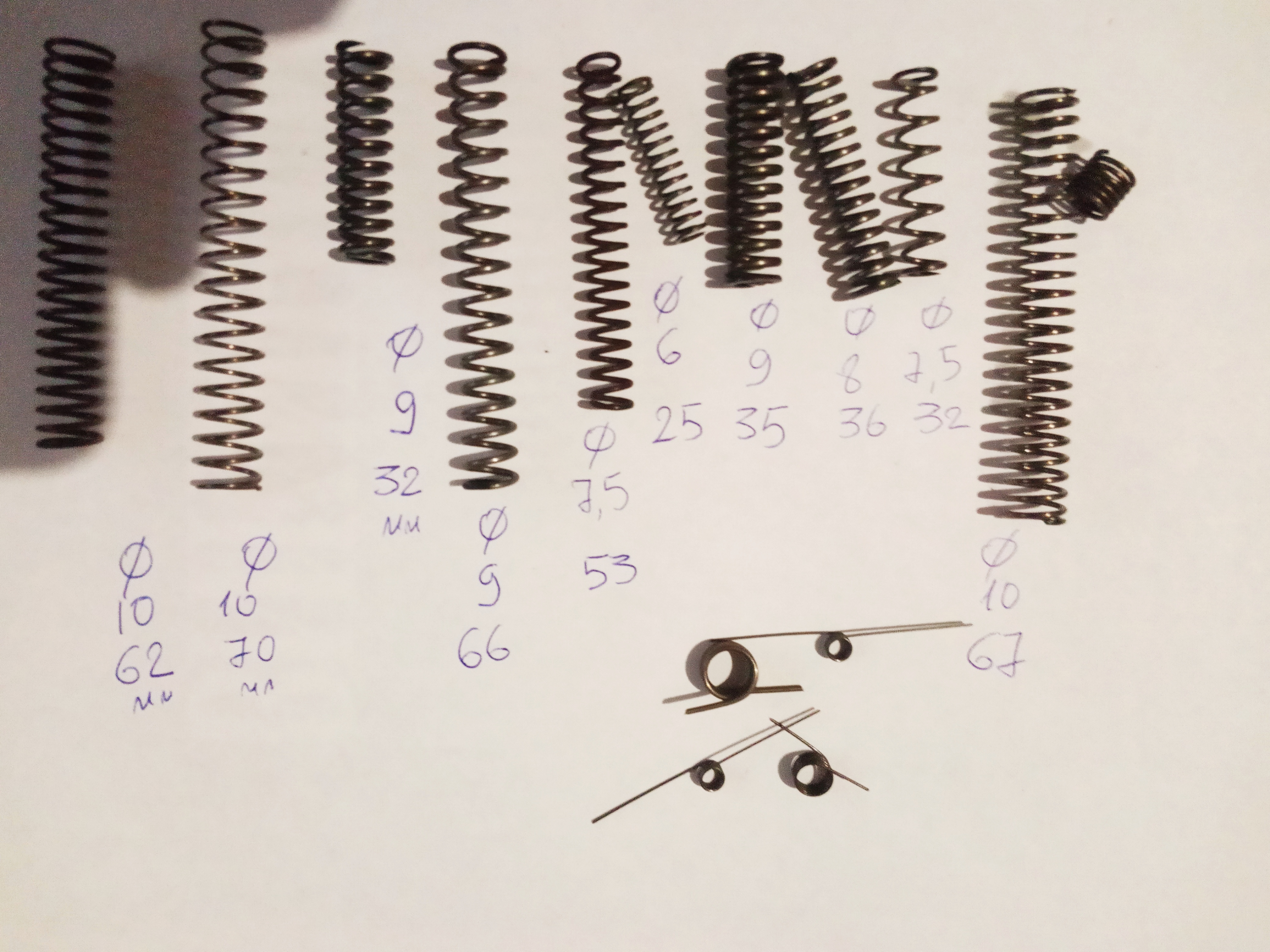 Продам излишки пружин. Цена 5 рублей. Пересыл от 10 рублей. Цифры- диаметр и длинна пружин. Писать и вопросы задавать просьба в личку