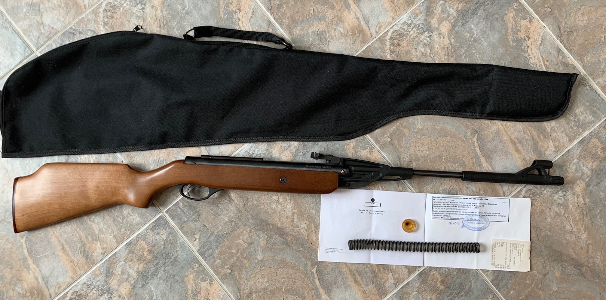 В комплекте также заводская пружина и манжета, чехол, паспорт, коробка.