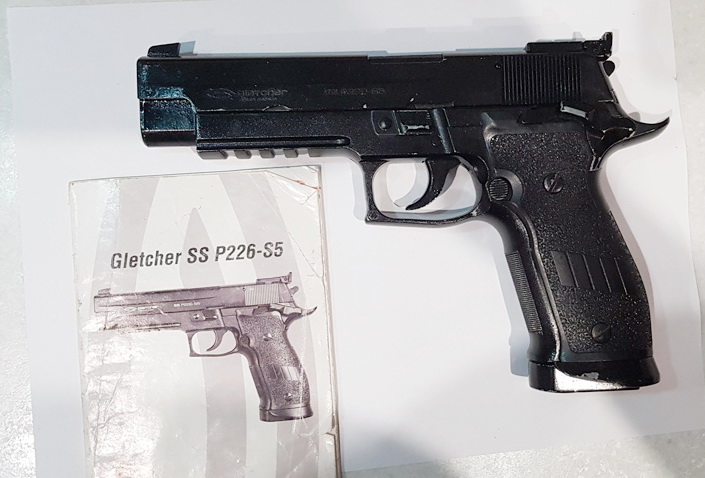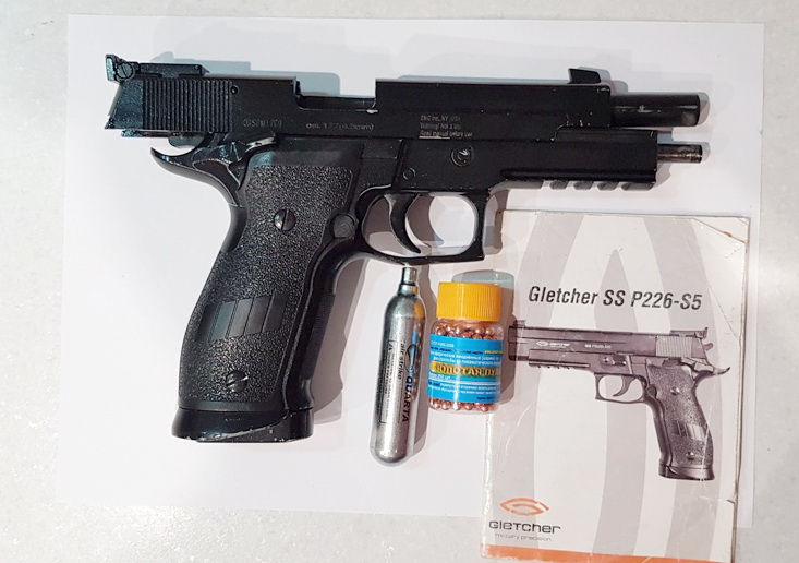 --Пневматический пистолет Gletcher SS P226 S5 с блоубэком, не плохое состояние, в комплекте доки, шарики, баллончик, цена 115 р.