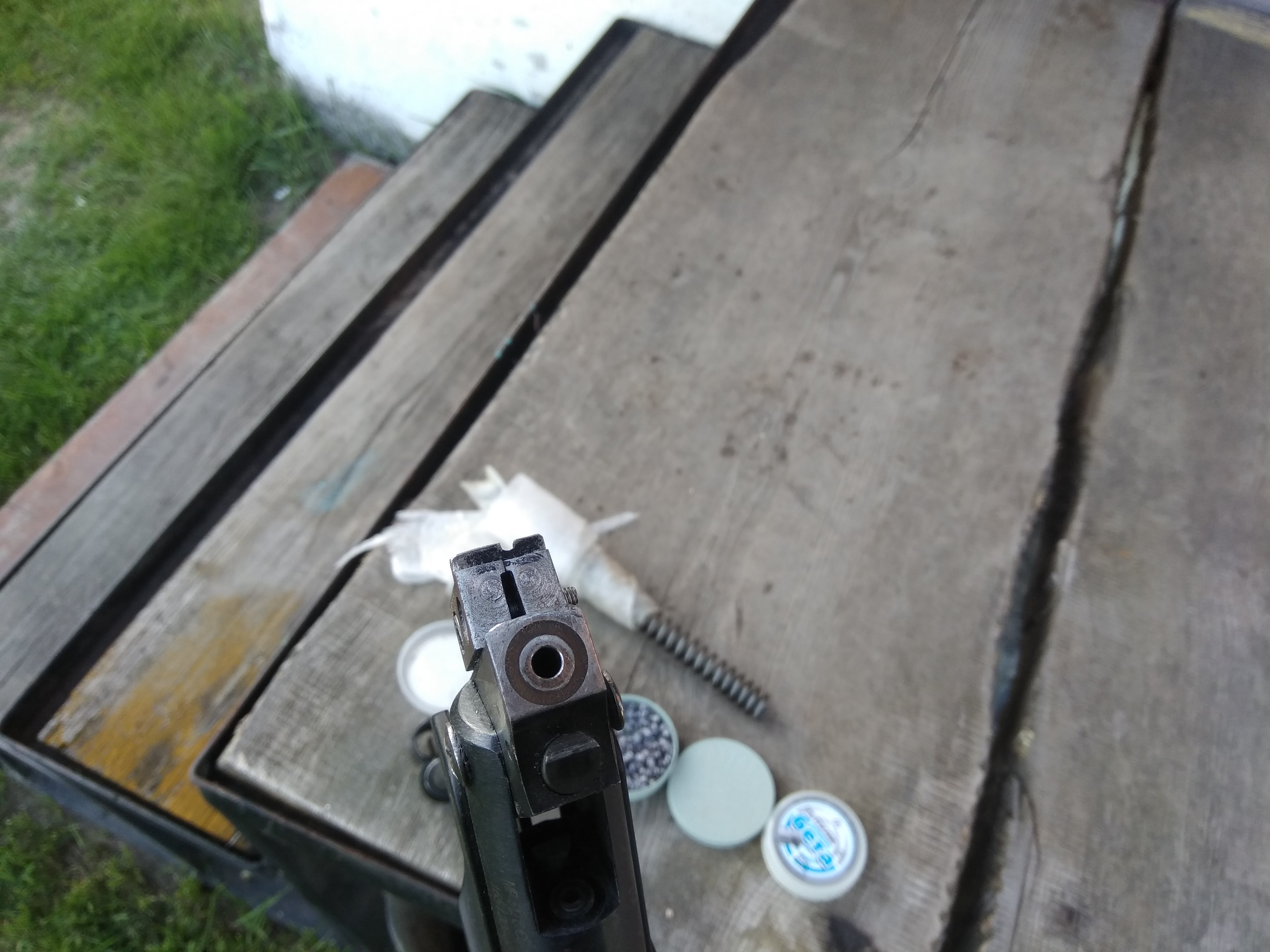 Мушка стальная, работает как утяжелитель. Ложе утяжелено. Спуск пилен.