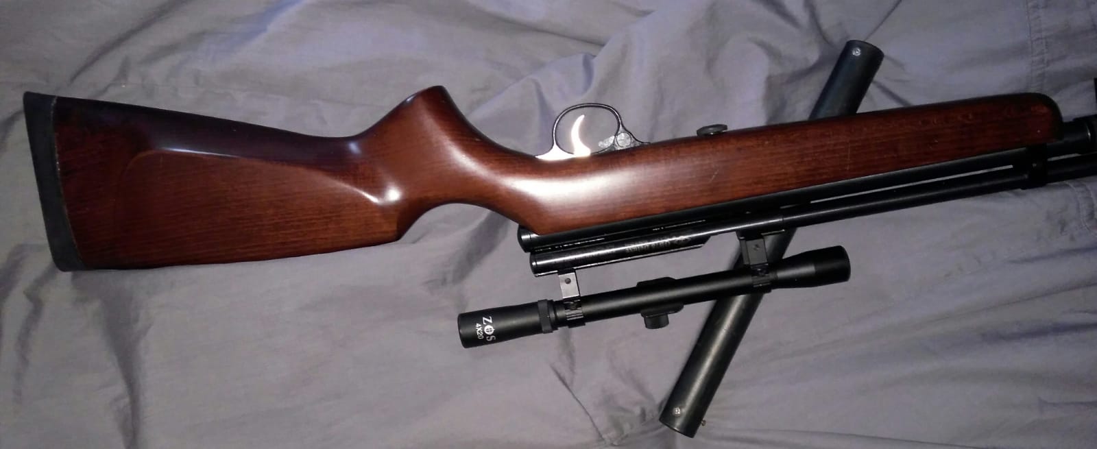 Нечто вроде Хатсана 55 или 70 моделей, это надёжные ПП переломные винтовочки,можно с газовой пружиной,чтобы могло это дело лежать,никому не мешая,по полгода,а когда надо,достали,поиграли в снайпера :ti_pa: и опять положили в смазочке.
