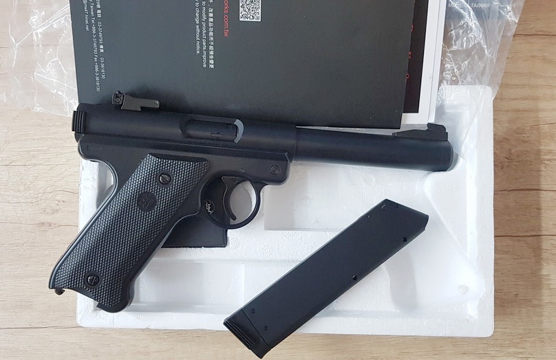 Этот агрегат от тайваньского производителя KJW, называется MK1, или Ruger MK1.