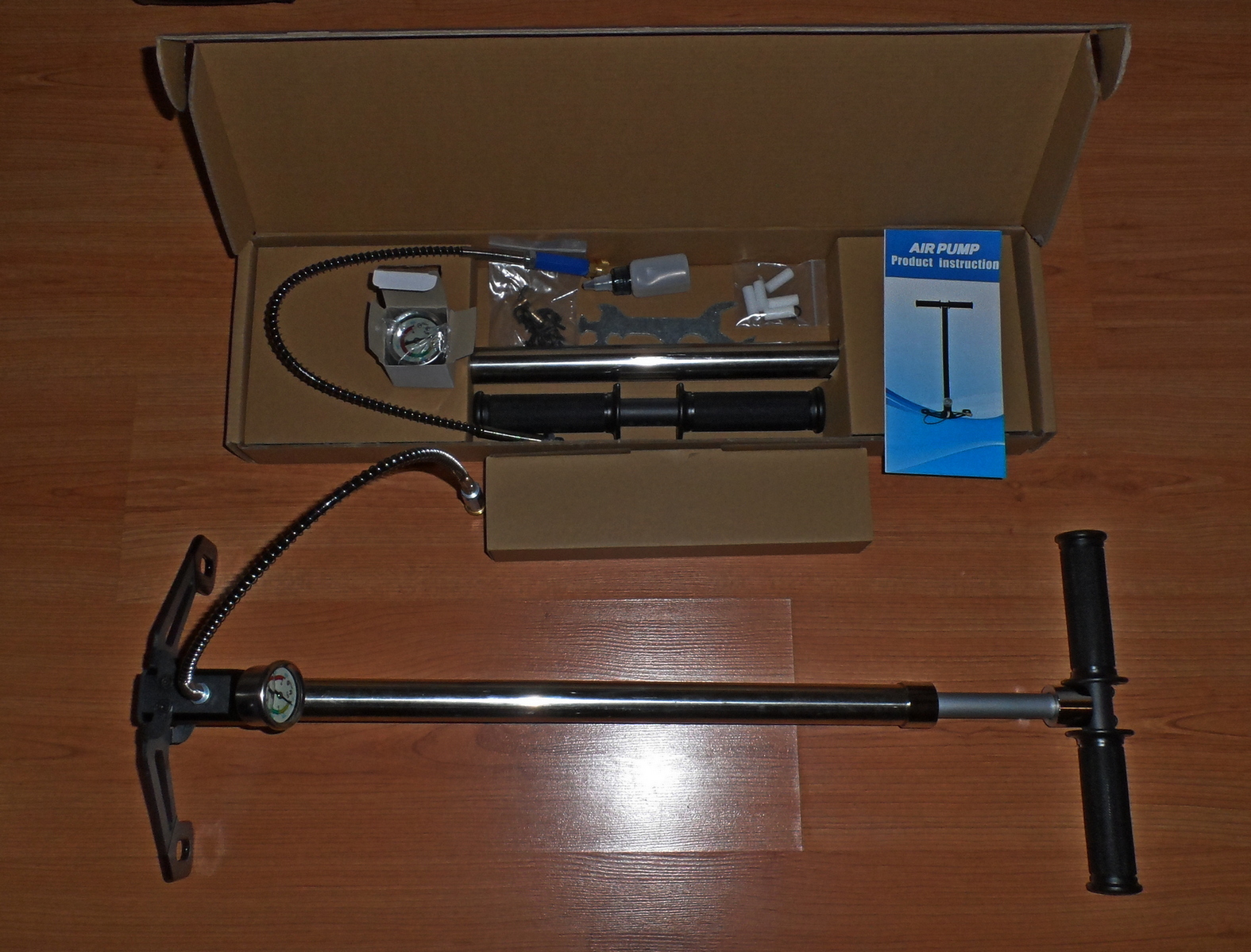 Предложу вашему вниманию хороший насос с повышенной производительностью. (приблизительно 240 см3 за один цикл) Заводское изготовление. Труба второй ступени изготовлена из Д16Т. В остальном нержавеющая сталь. По сравнению с обычными трехступенчатыми китайскими насосами, увеличенная толщина стенок труб, что придает насосу жесткость и целостность конструкции. По общим впечатлениям – хороший насос за свои деньги. Большой объем 1-ой ступени. В комплекте насос, манометр, ЗИП, осушитель, ключ, смазка, шланг, большой манометр
