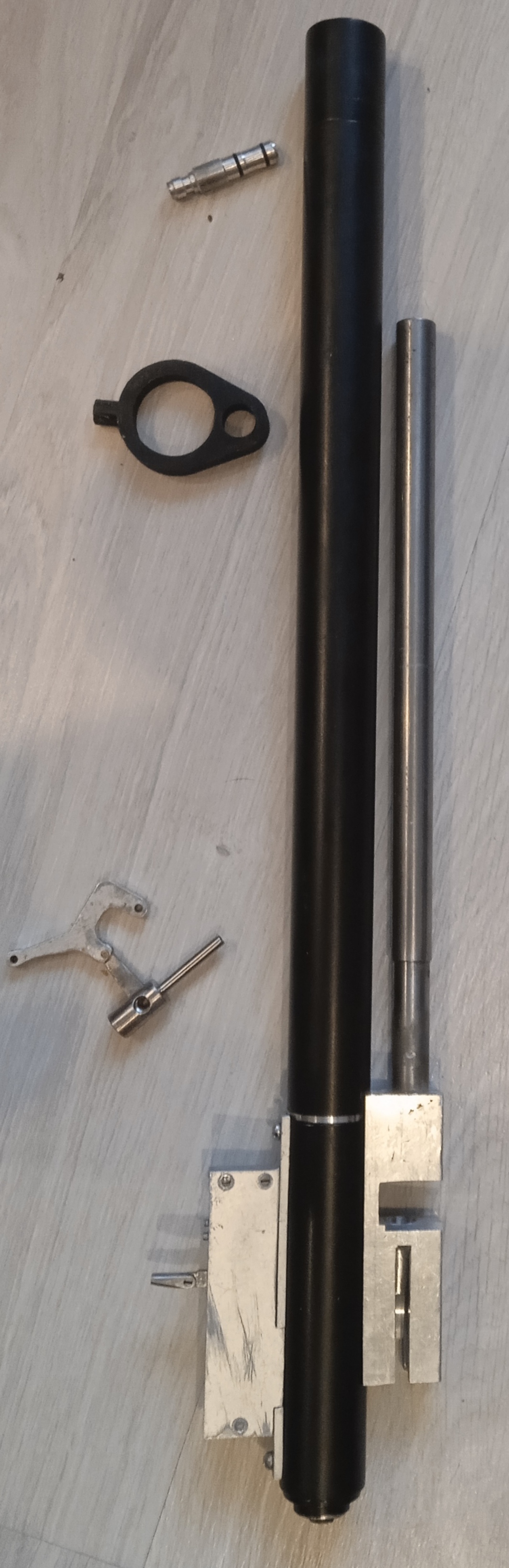 Продам запчасти для сборки ПСП на базе кита Ворона. Резервуар 42 см, диаметр 30мм, общая длина 57 см. Столик 6.35 длинна 30 см. (Донатона). Необходимо проточить столик по диаметру для посадки в коробку. Сделать ложе и установить модератор. Досылатель нужно будет выточить новый этот под 4.5. Всё что на фото 450 рублей.