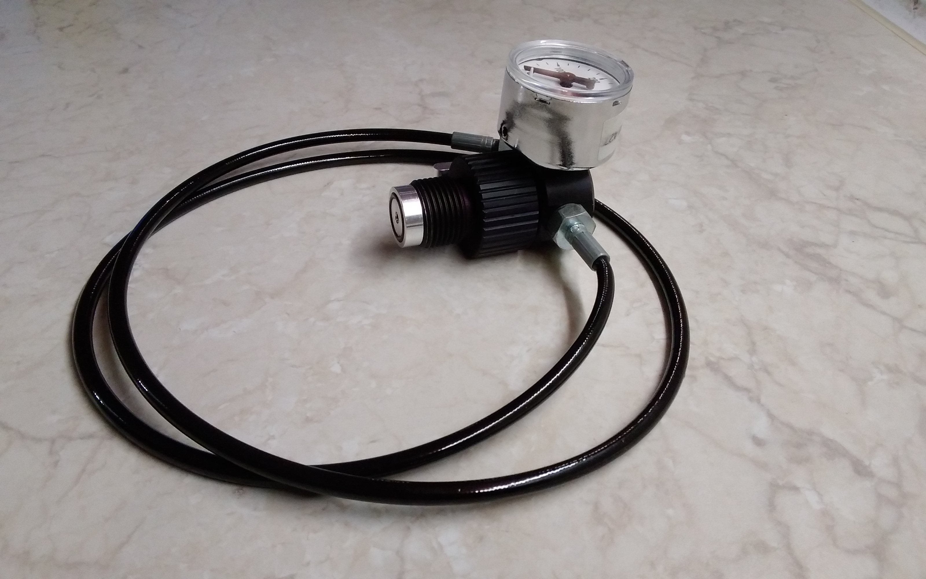 ...соответственно, с метровым итальянским шлангом и манометром Wika.