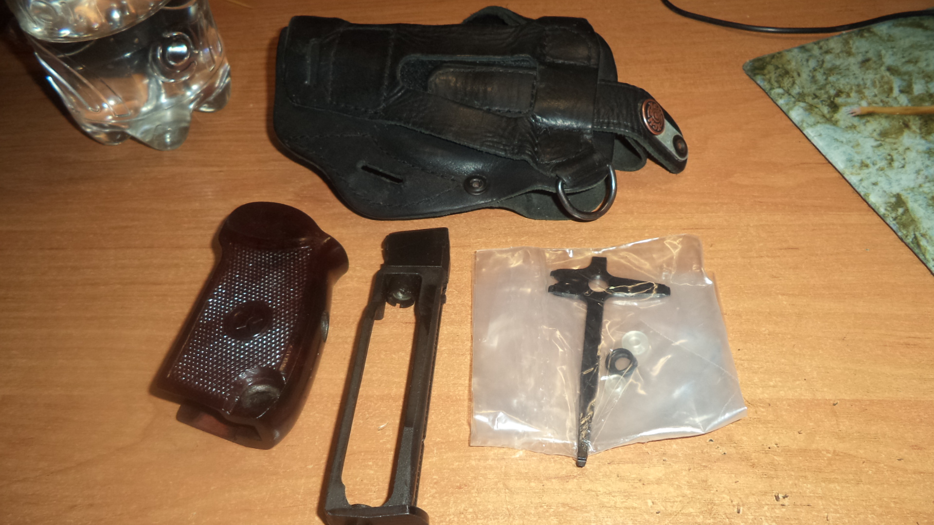 Остатки от 32го МР. Магазин новый , проверен 100р. Рукоятка от списанного ПМ , подогнана для 32й серии 32р. Рем набор включая ключ 15р. Кобура для левшей и правшей 12р. По всем вопросам звоните 80336863322.