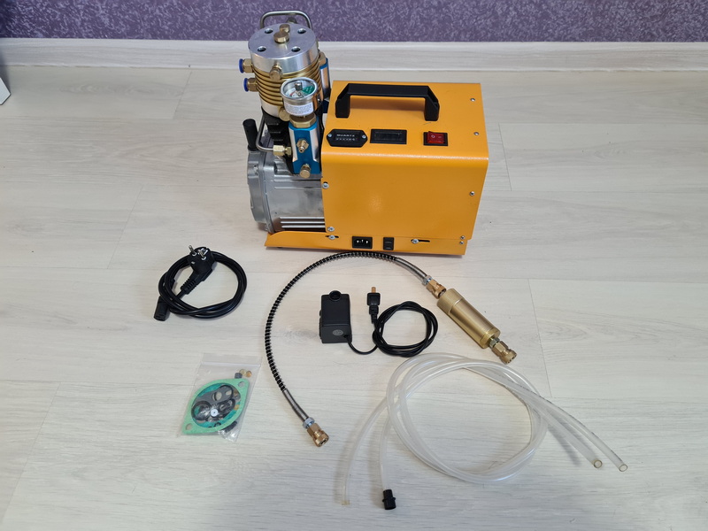 Продам компрессор ВД 220В 1.8 кВт, новый, полный комплект. С жидкостным охлаждением цилиндра ВД нового образца, с дополнительными боковыми сепараторами, с автоматическим отключением при заданном давлении, с предохранительной разрывной мембраной ВД. Дополнительно отдам комплект ЗИП, который приобретался отдельно. Компрессор доработан счетчиком моточасов. 800р.