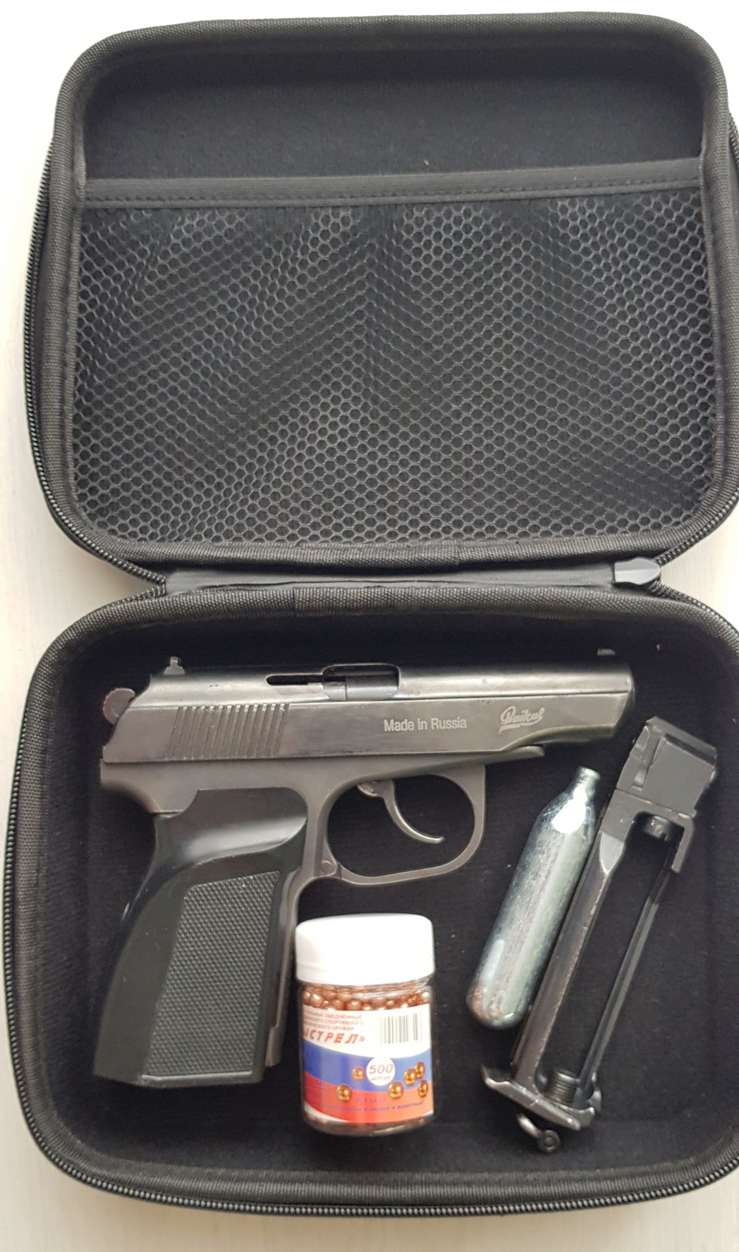 Все резинки заменены. В комплекте удобный чехол. Так же шарики и баллончик. Голова и гайка с зацепом, прокладка на гайке так же есть. Цена 250 р. 80447343135.