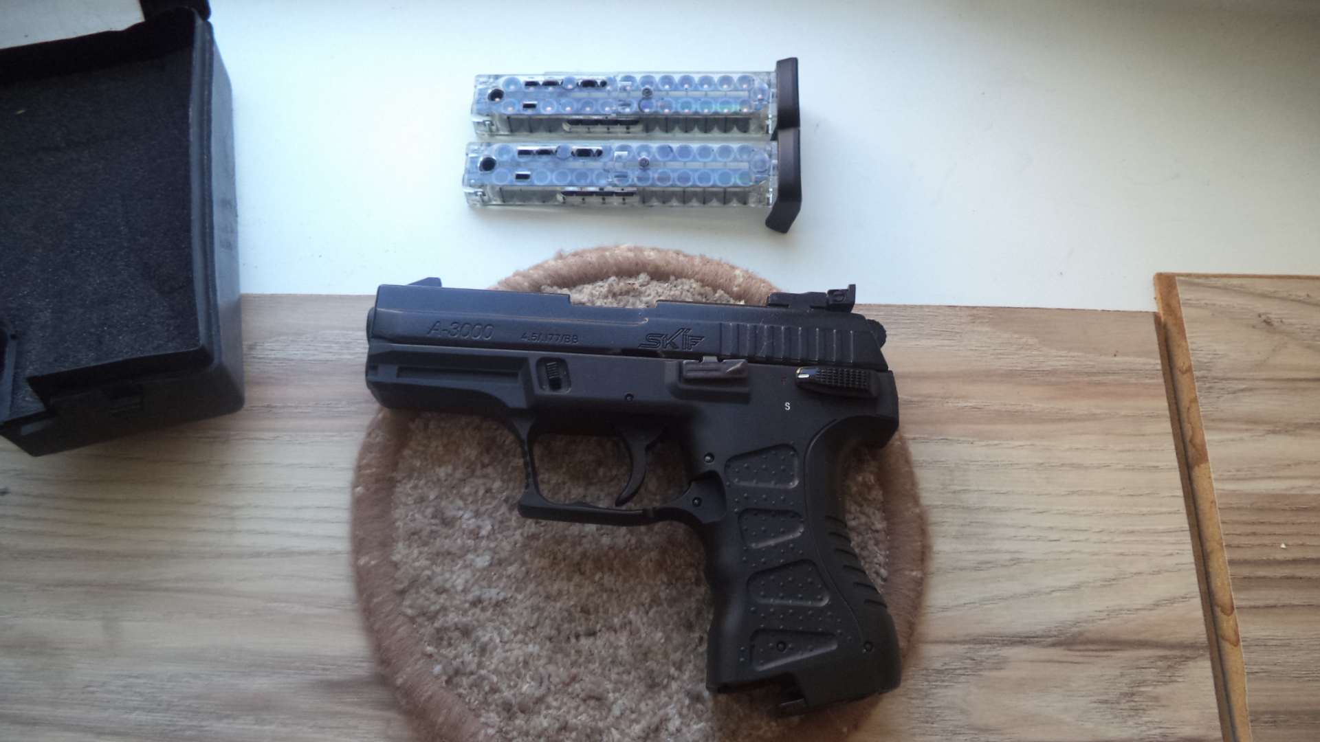 Пистолет в очень хорошем состоянии, практически новый. Нет не коцок не царапин. Настрел две обоймы , одна с пульками , одна с шариками, все отлично работает. В комплекте как с завода кейс, выколотка, шомпол для выталкивания , документы, две обоймы. ЦЕНА 200р. Почта. Все вопросы по телефону 80336863322.