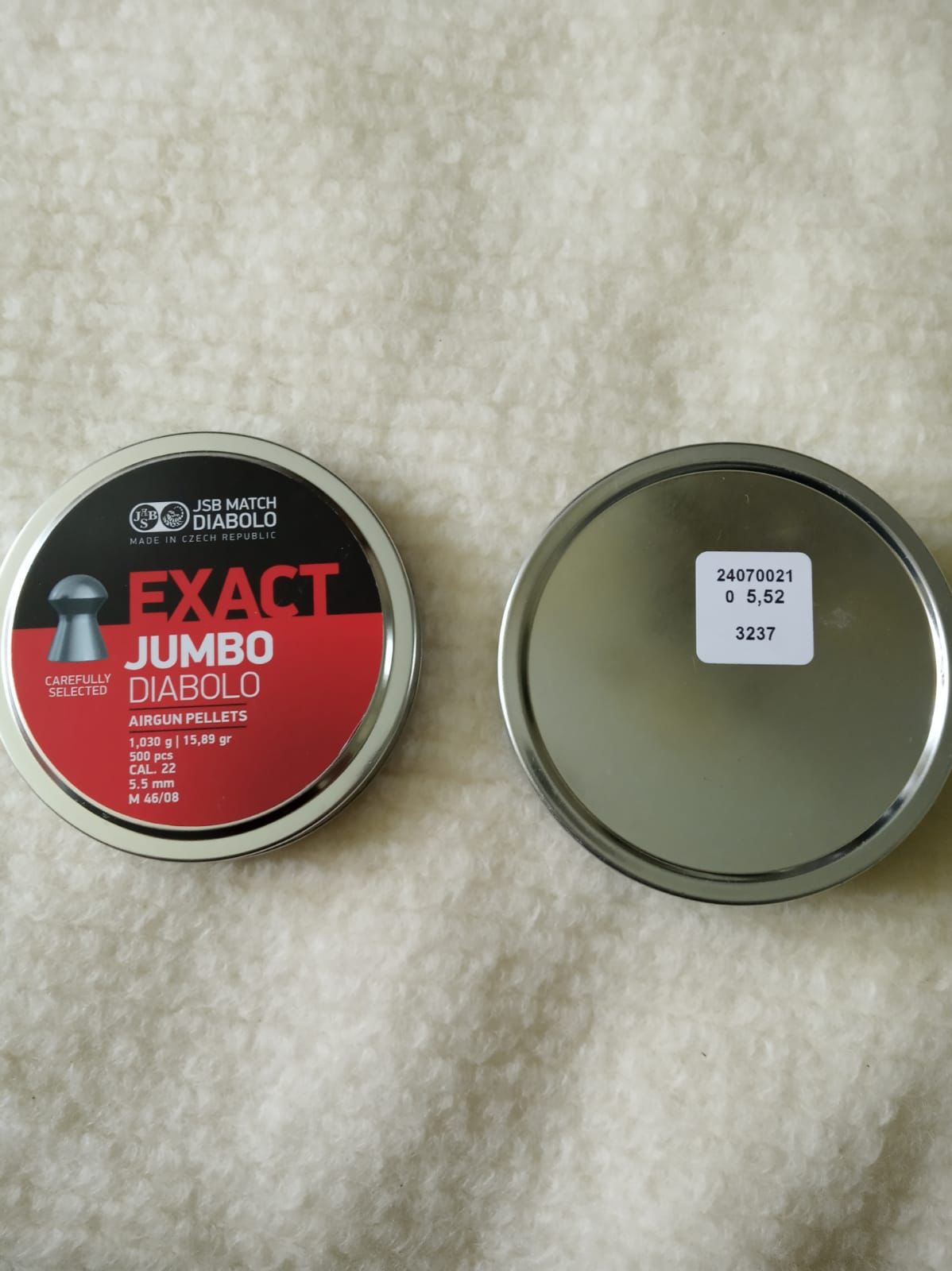 По причине перехода на более тяжёлую пневматическую пулю продам банку JSB exact jumbo diabolo 5.52 (1 пуля весом 1.030g), в банке 500 шт. Данные пули достались мне в начале 2022 года абсолютно новыми и не бывшими в употреблении :-) за 45 белорусских рублей. Собственно, в эту же стоимость их и оцениваю. Минск. +375295864997