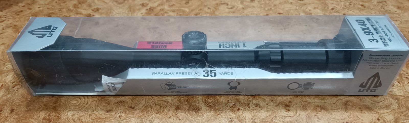 1. Прицел UTG Leapers 3-9×40 в полном заводском комплекте. Состояние б/у, но близко к идеальному, ничего не болтается, не гремит, не стерто, не погнуто и т.д. Цена 300 руб.