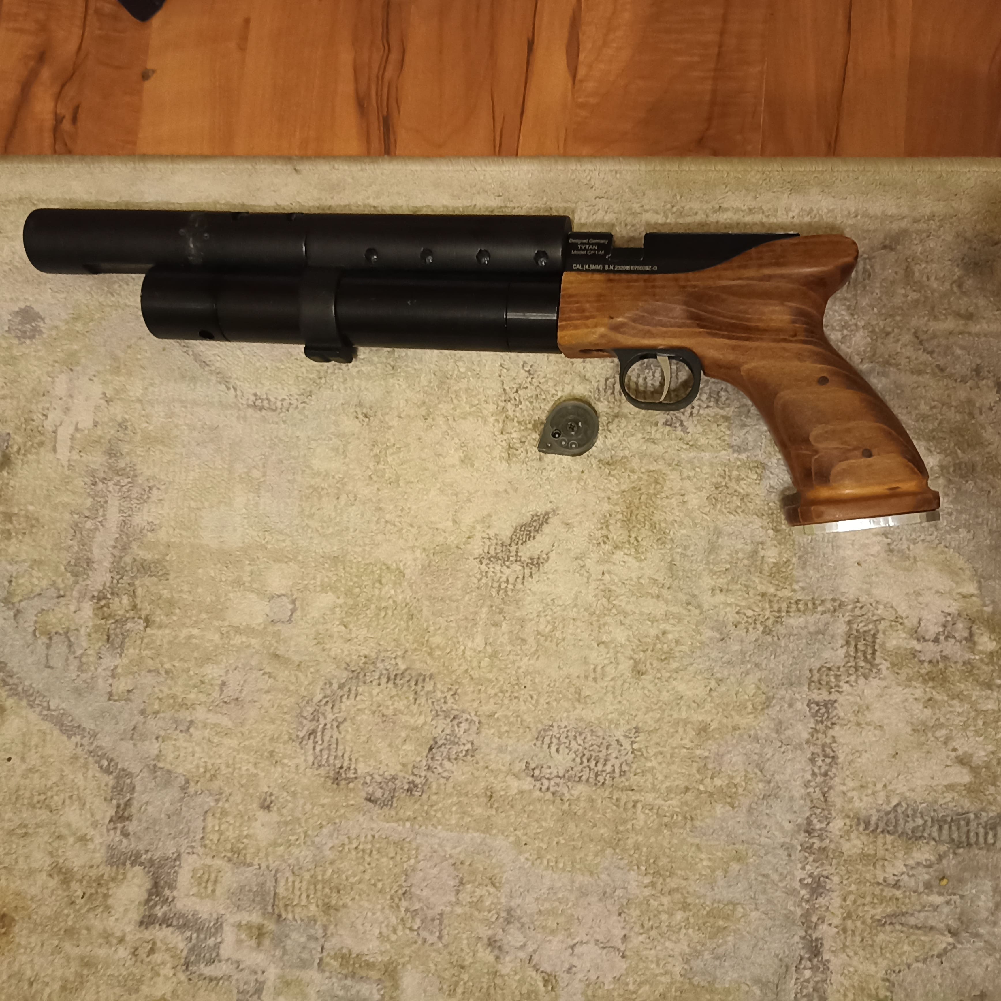 Выставляю на продажу свою игрушку. Появилась новая хотелка, иначе бы даже не создавал тему. 4,5мм, прямоток (170-90, 33-35, 215-225), длина 47 см, быстросьемный костыль. Модер 3д печать глушит почти что в ноль. Насос обычный самый, даже расписывать про него нечего. Качает хорошо - 30 качков и пест снова задут. Настроен под эти пули. Пест с прикладом, насос с зипом, барабанчик на 9 пулек, штуцер, две банки пуль - 800р. Всё это без насоса 700р - отакая значит математика. Как обычно почта, европочта по РБ без проблем.