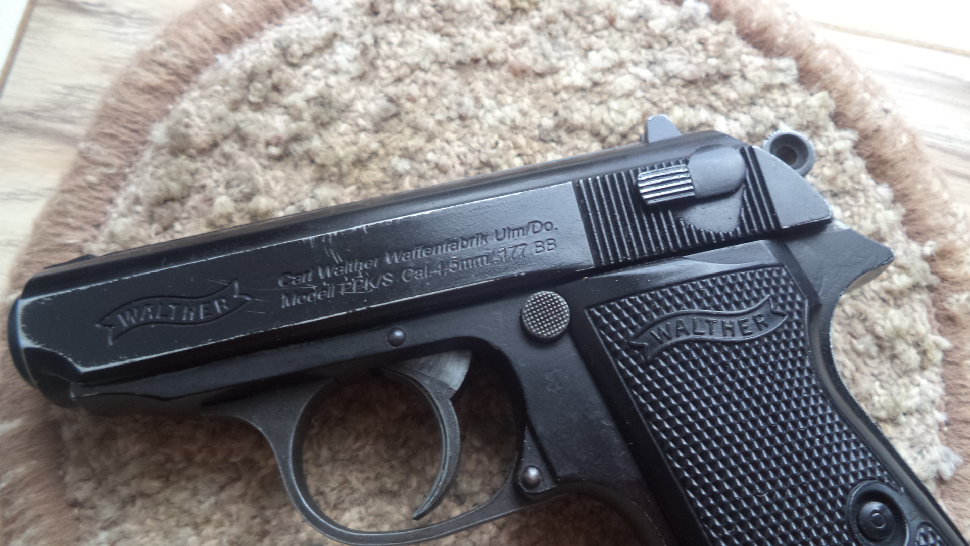 ППК-С 100р. в рабочем состоянии. После установки нового баллона может выстрелить очередью. Дальше работает нормально , но взводить курок надо в ручную. Возвратная пружина затвора сломалась, заменена более жесткой , из-за этого блоубек не работает . Если поставить родную все будет норм. Может у кого есть желание покопаться. Все вопросы по номеру 80336863322. Вайбер. Почта.