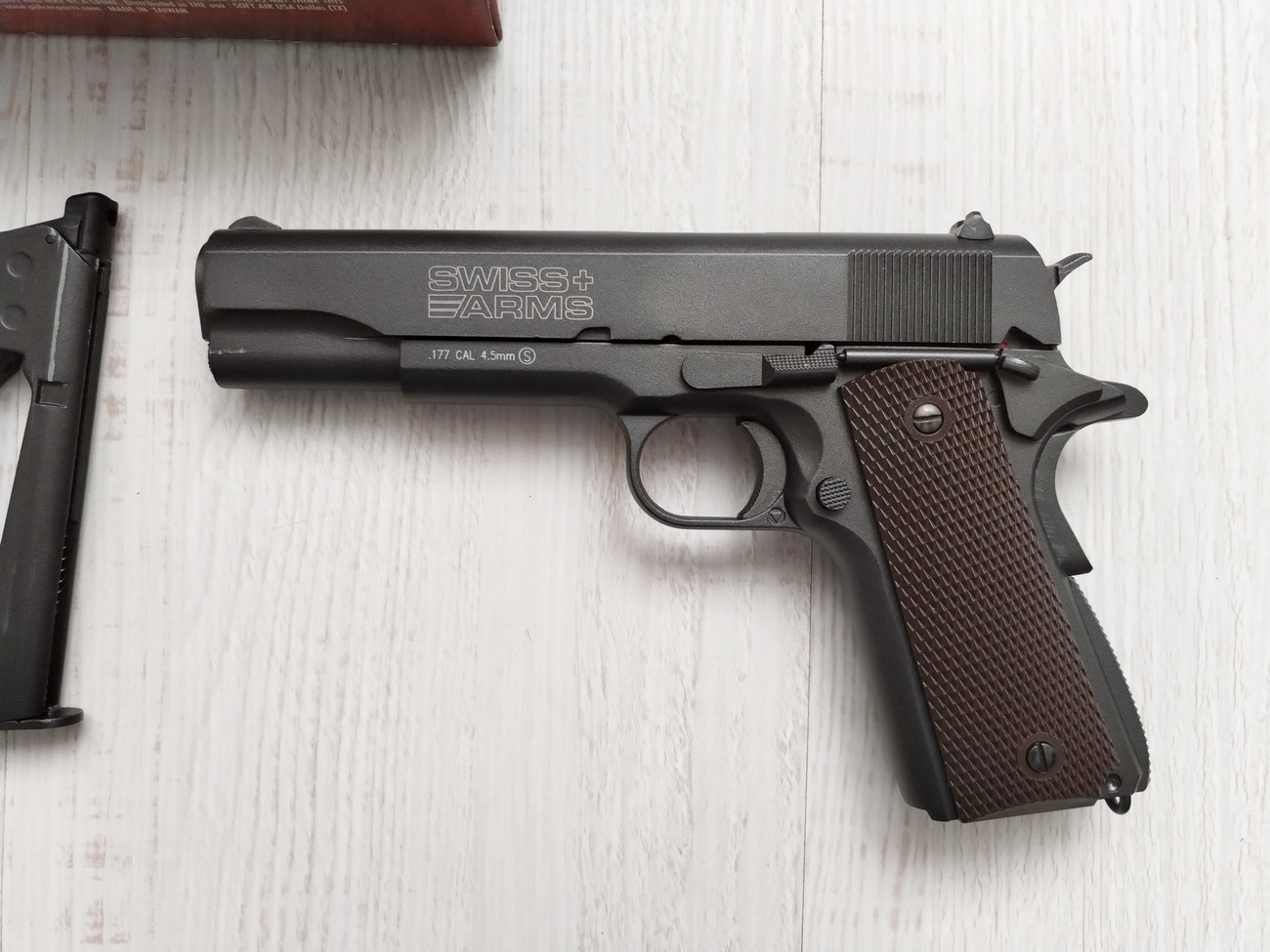 Пневматический пистолет Swiss Arms P1911 (Кольт 1911) блоубэк. Состояние приближенно к новому, настрел несколько баллончиков. Комплект коробка, поджимной ключик, шарики, баллончик. Цена 390 р. Писать в личные или вайбер 80447343135.