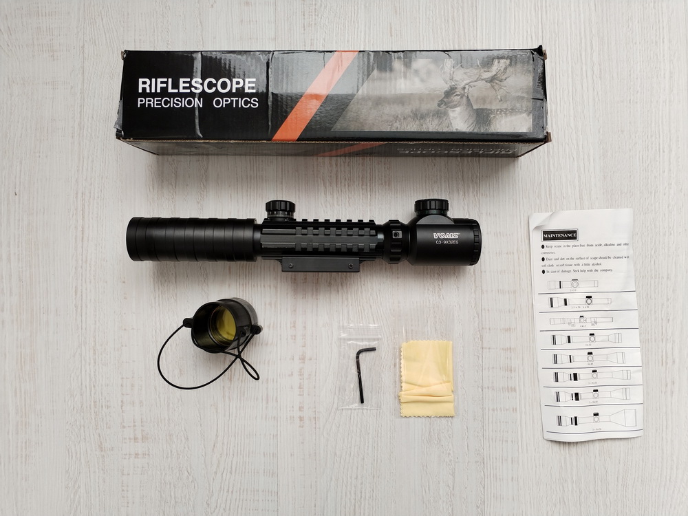 Прицел ВОМЗ 3-9*32 новый, комплект - брошюрка, ключик, коробка, тряпочка для чистки линз, защитные колпачки. В прицеле присутствует два крепления, как ласта так и вивер. Подсветка сетки зеленого цвета. Цена 120 р. Писать в личку или на вайбер 80447343135.