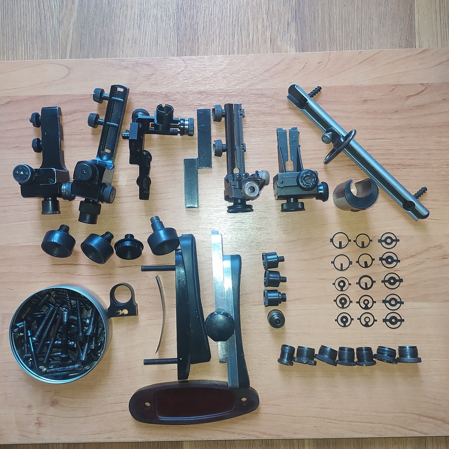 1.Первый прицел слева на право 120 р(СССР) по ласте подходят к мр 512 ,второй малая ласта 8,9мм 150р(СССР), третий прицел с боковым креплением( есть спец-кронштейн для крепления на ласту сверху) по 150 р ,четвертый от ANSHUTZ 80р (есть нюанс), следующий от FWB 300 по 100р ( нет винта зажима),
