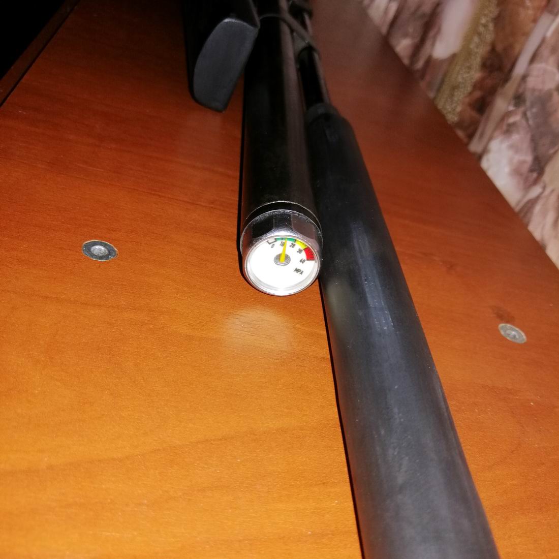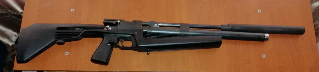 Ресивер 95 см. Опресован на 350кг/см.Рабочее давление от170 до 100.Запаса хватает на 25 хороших пуков. При 17мпа скорость 22.м. при 15мпа - 25.м. при110 22.м.