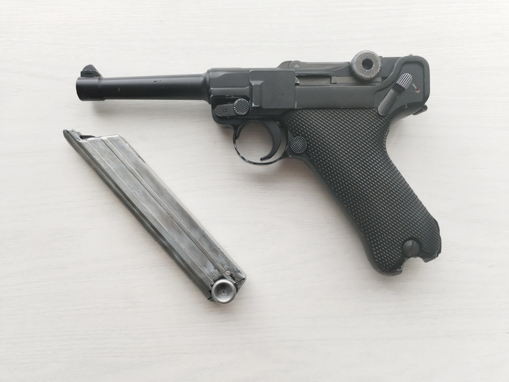 WE Luger 'Parabellum' P-08 короткий, грингаз (страйкбол). Блоубэк работает исправно. Магазин не травит. Цена 285 р.