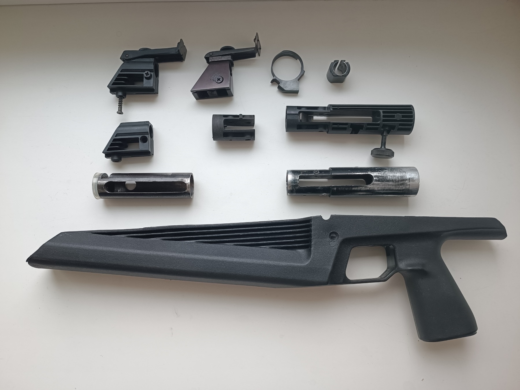 Муфта (пластик) в сборе (храповик, штифт, пружина, гайка приклада, винт приклада) - 20 рублей